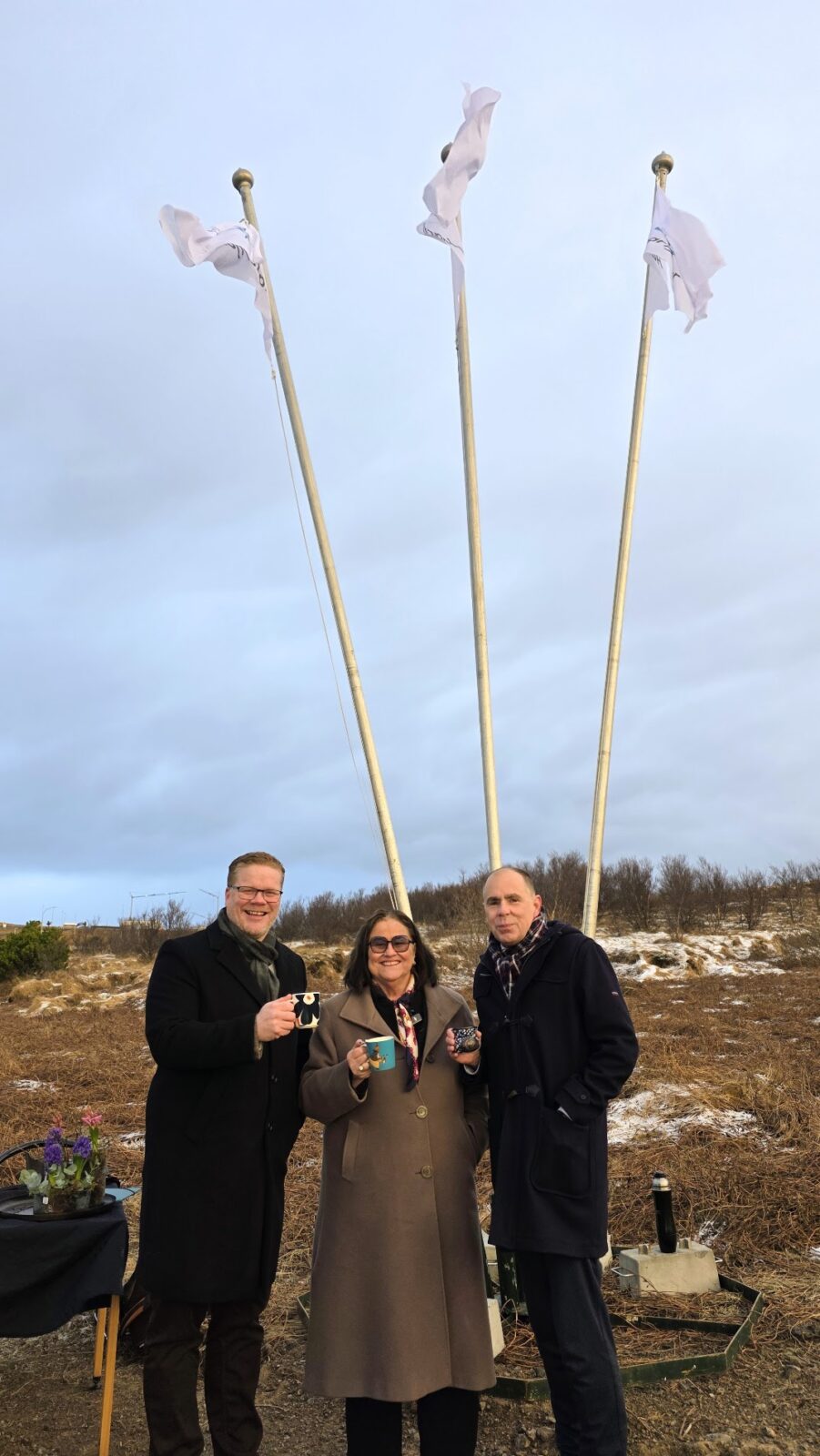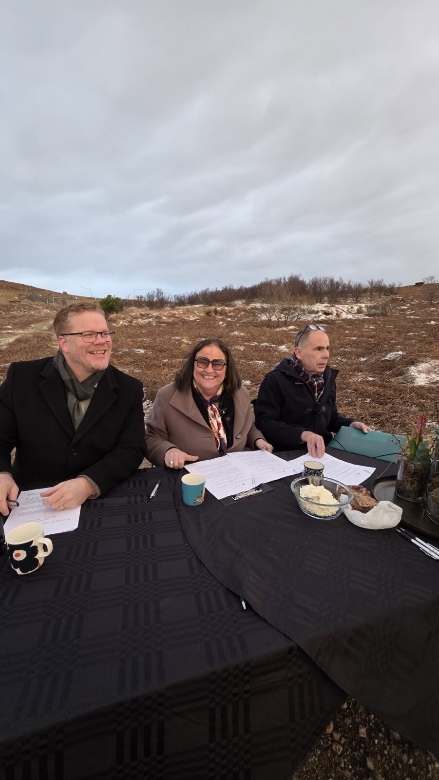 Ráðherra, bæjarstjóri og framkvæmdastjóri Vigdísarholts skáluðu í kakói með rjóma við undirritun á samkomulagi um byggingu og rekstur nýs 108…
