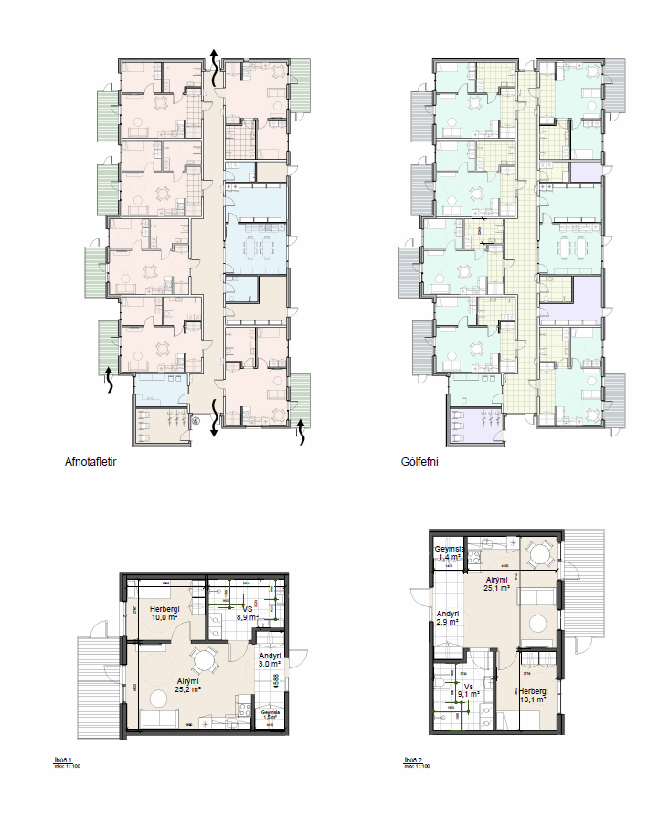 Hver íbúð verður 48 fermetrar ásamt 175 fermetrum í starfsmanna- og öðru sameiginlegu rými, samtals nettó um 463 fermetrar. Heildarfjárhæð verksins nemur um 380 milljónum króna.