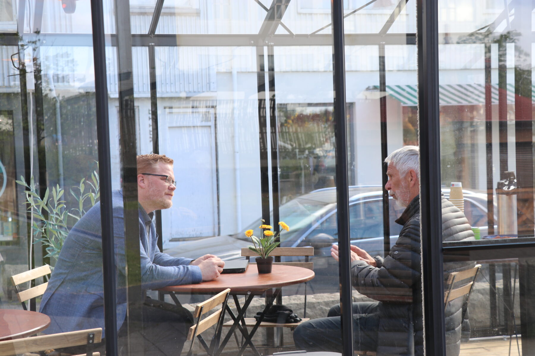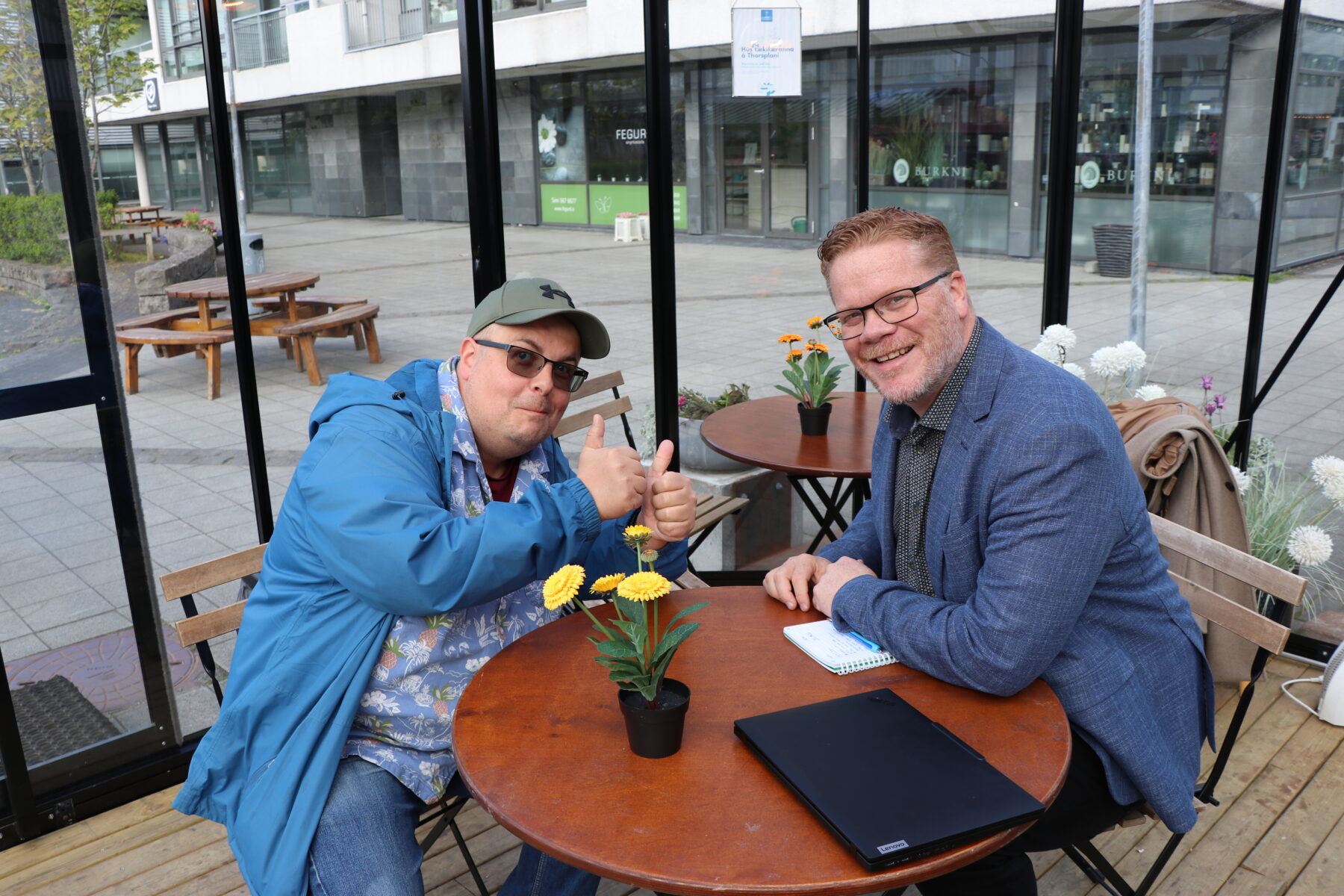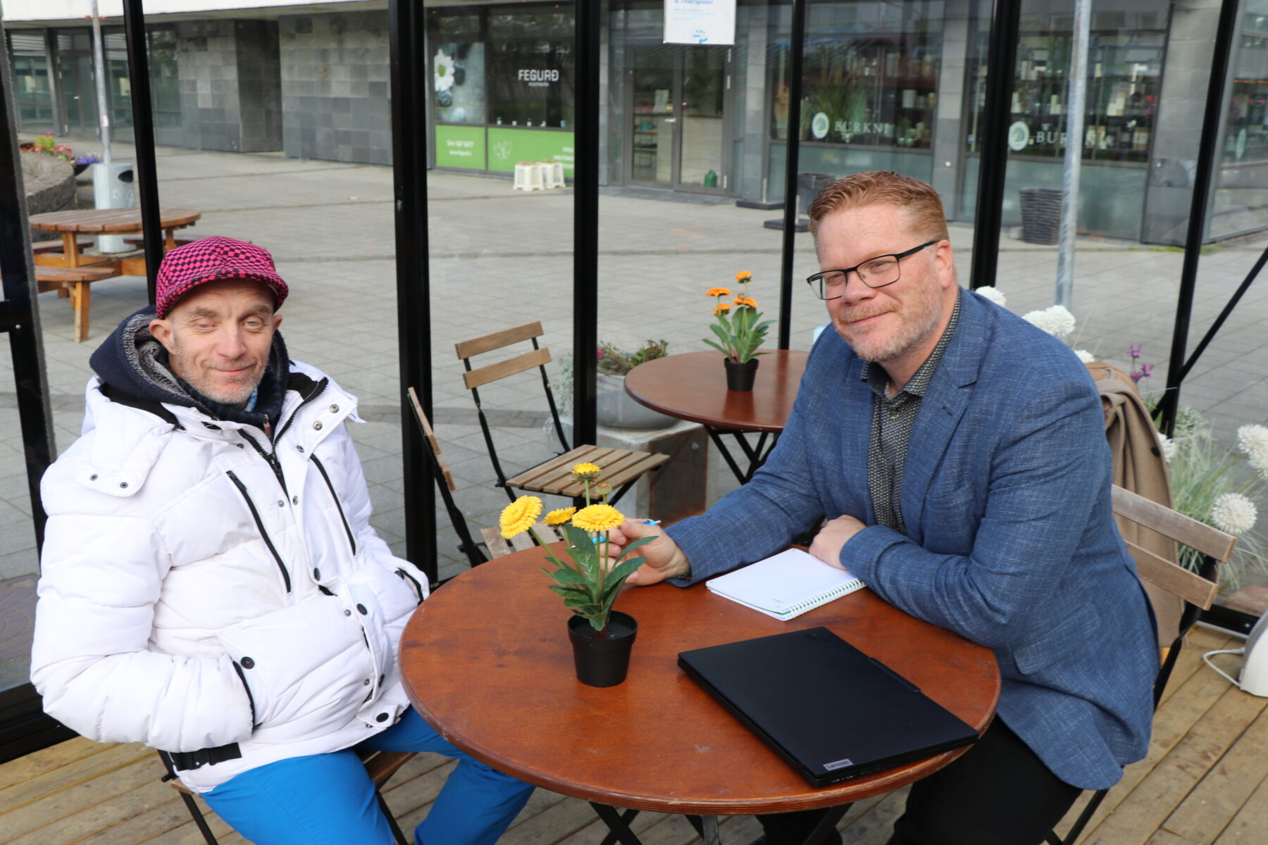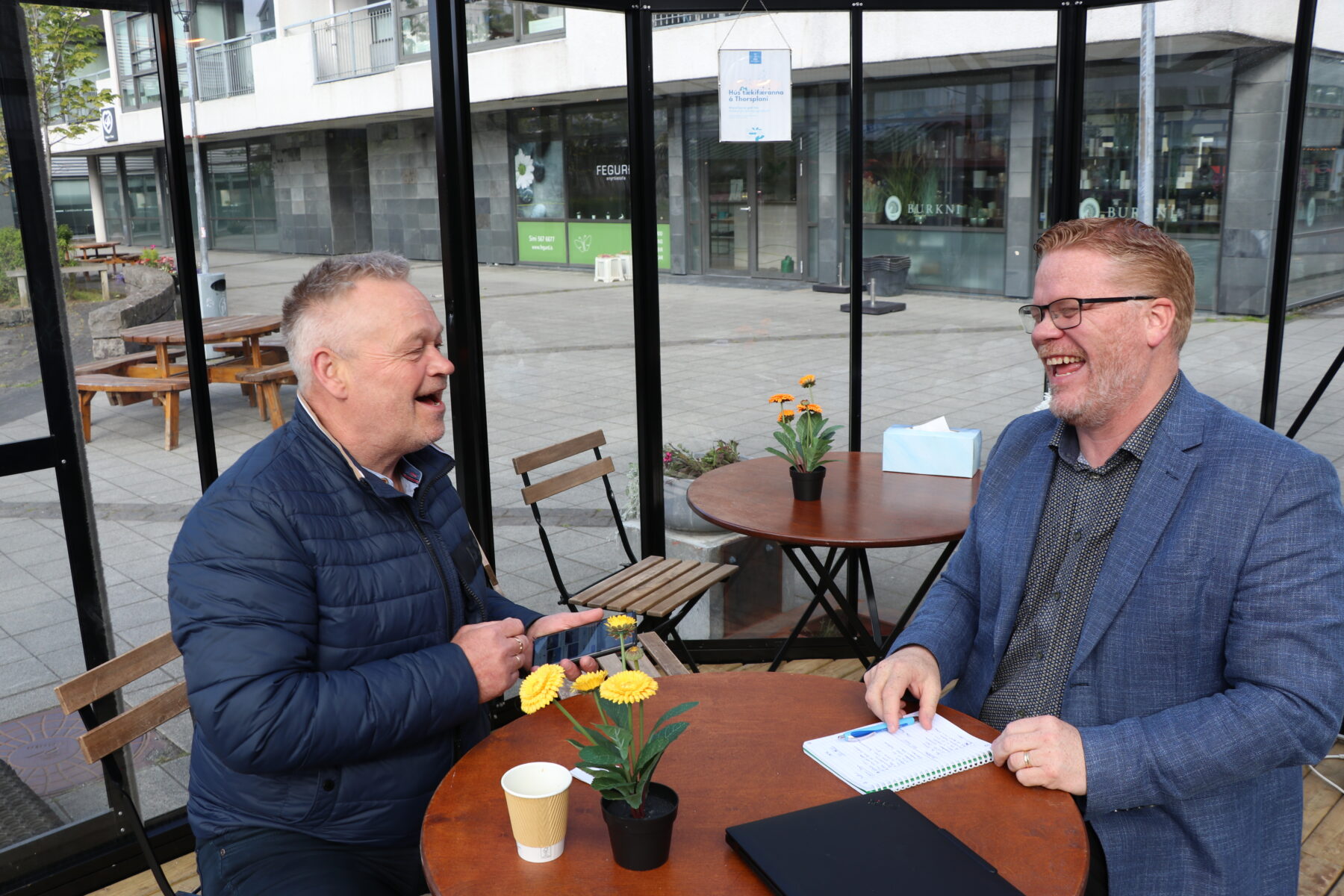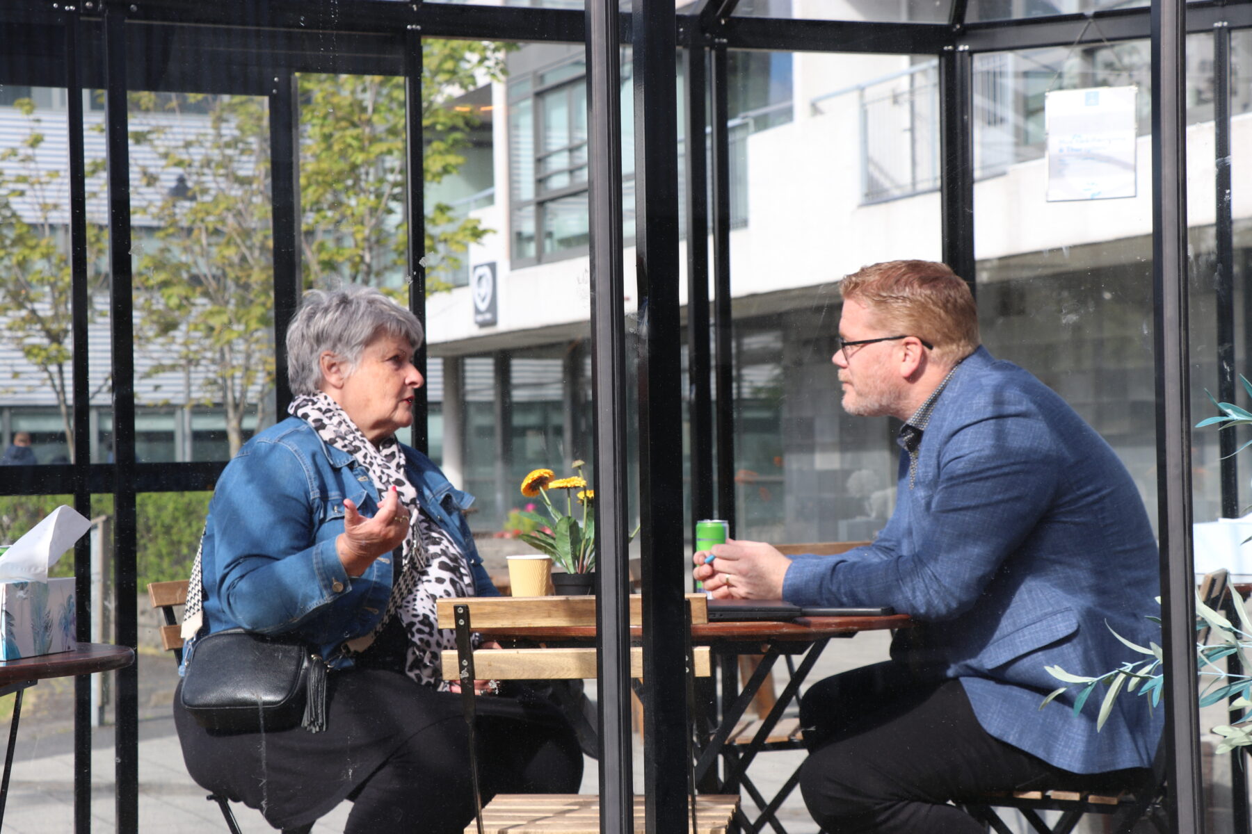 Stöðugur straumur var í opinn viðtalstíma Valdimars Víðissonar bæjarstjóra í morgun á Thorsplani. Sum heyrðu af þessu uppátæki bæjarstjórans í Bítinu á Bylgjunni, önnur sáu frétt á Facebook og enn önnur í afspurn enda í þriðja sinn sem hann heldur opinn fund á Thorsplani.