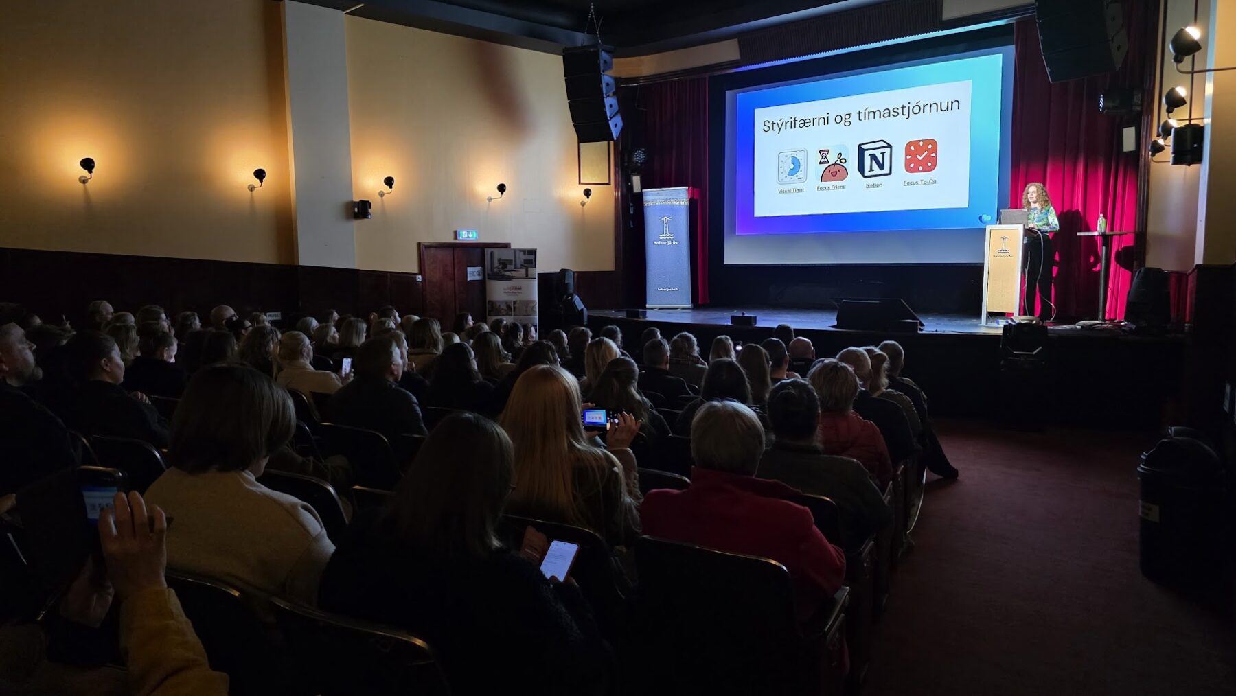 Vel á annað hundrað foreldra mættu á fyrirlestur Jóhönnu Birnu Bjartmarsdóttur þar sem hún fór yfir hvernig nýta megi tæknina til að einfalda sér námið. Já, þétt var setið í Bæjarbíói.