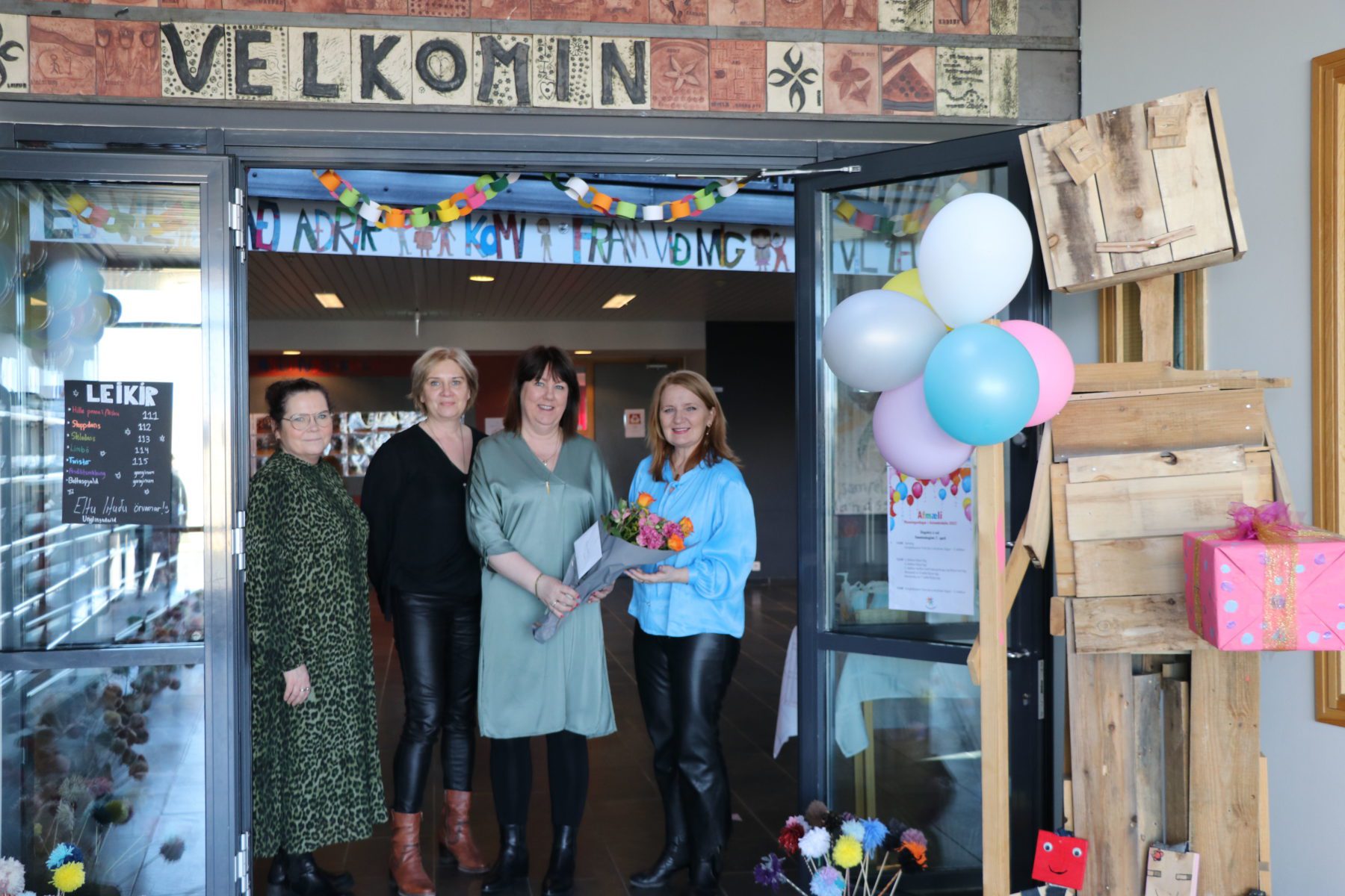 Menningardagar í Áslandsskóla. Frá vinstri: Hrund Apríl Guðmundsdóttir staðgengill sviðsstjóra mennta- og lýðheilsusviðs, Kristín Thoroddsen formaður fræðsluráðs, Unnur Elfa Guðmundsdóttir skólastjóri Áslandsskóla og Rósa Guðbjartsdóttir bæjarstjóri Hafnarfjarðar.