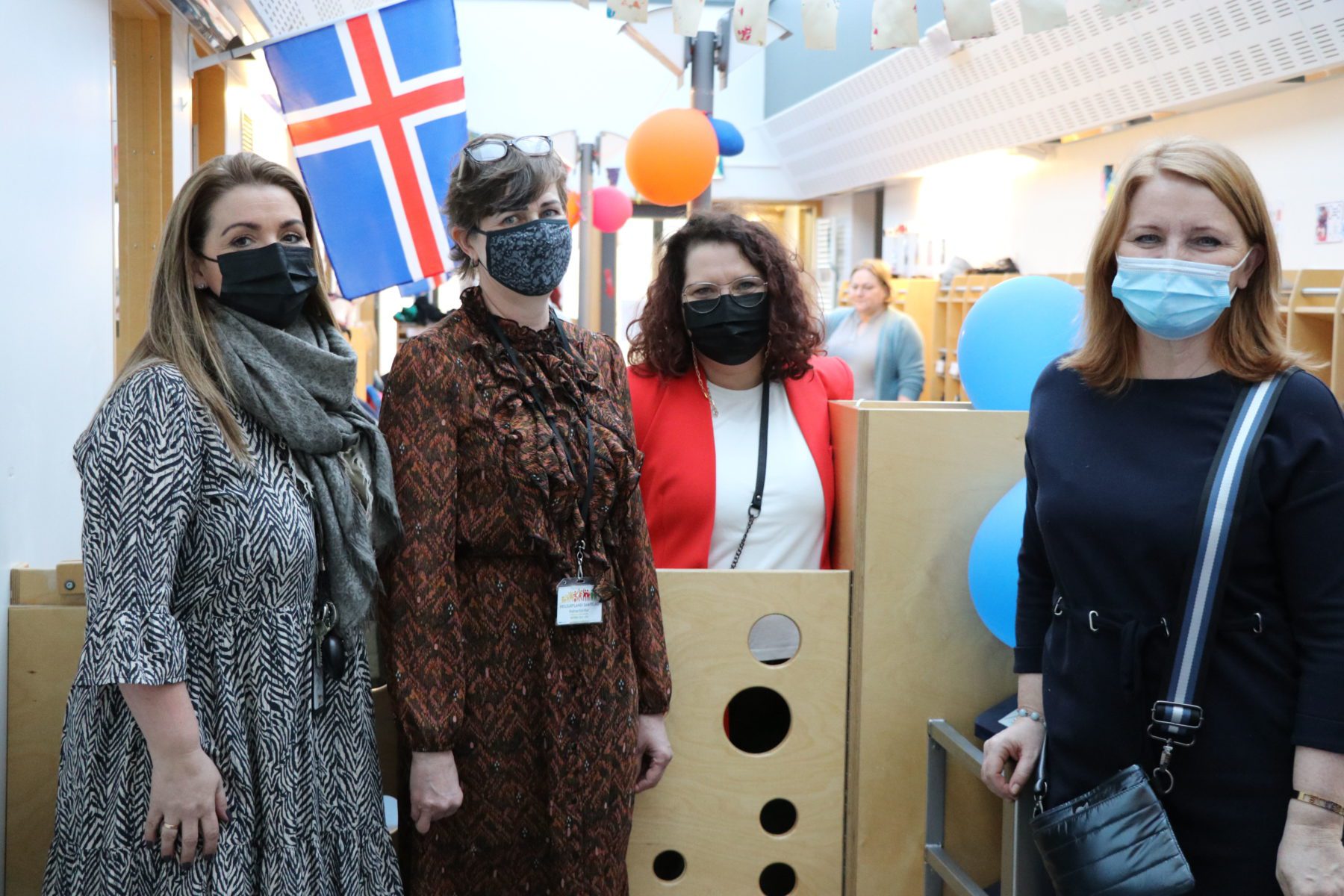 Fanney Dóróthe Halldórsdóttir fræðslustjóri og sviðsstjóri mennta- og lýðheilsusviðs, Inga Líndal Finnbogadóttir leikskólastjóri, Hrund Apríl Guðmundsdóttir aðstoðarmaður sviðsstjóra og Rósa Guðbjartsdóttir bæjarstjóri Hafnarfjarðar.