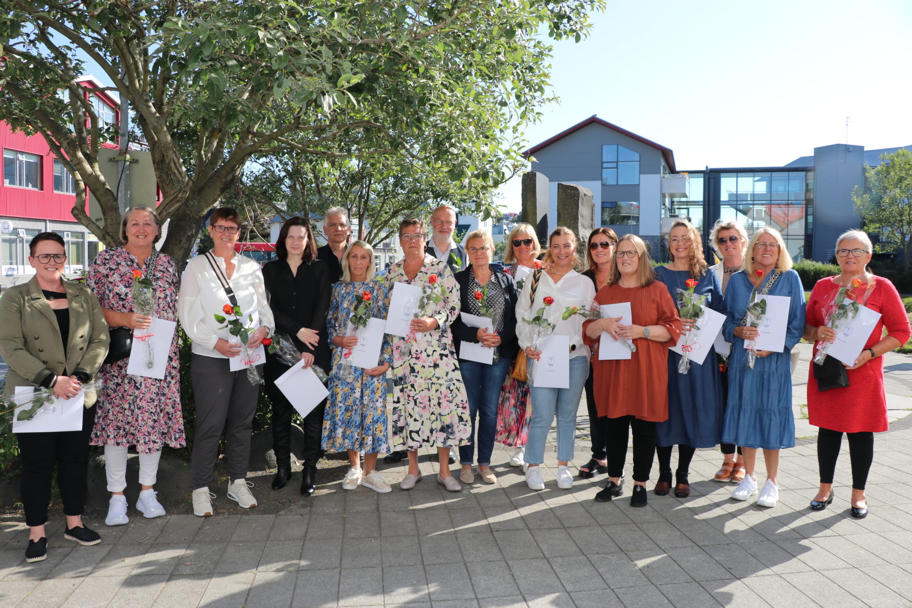Í ár hlutu 18 starfsmenn 25 ára starfsaldursviðurkenningu og er samanlagður starfsaldur þessa flotta hóps 450 ár. Þessum árum hefur starfsfólk varið af áhuga, fagmennsku og þekkingu við fjölbreytt störf á starfsstöðvum bæjarins.