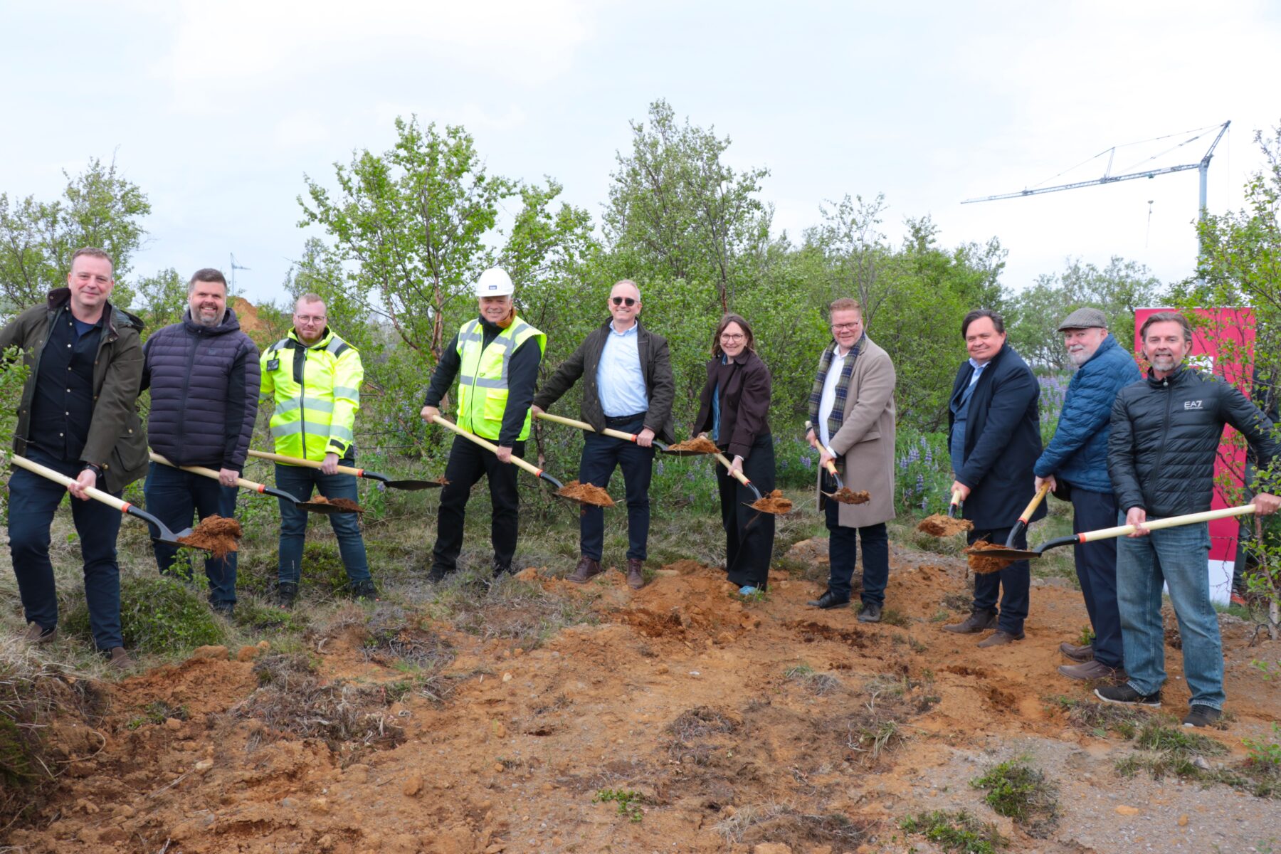 Valdimar Víðisson, bæjarstjóri, tók ásamt Bjarna Þór Þórólfssyni, framkvæmdastjóra Búseta, stjórn félagsins og fulltrúum Ístaks fyrstu skóflustunguna.