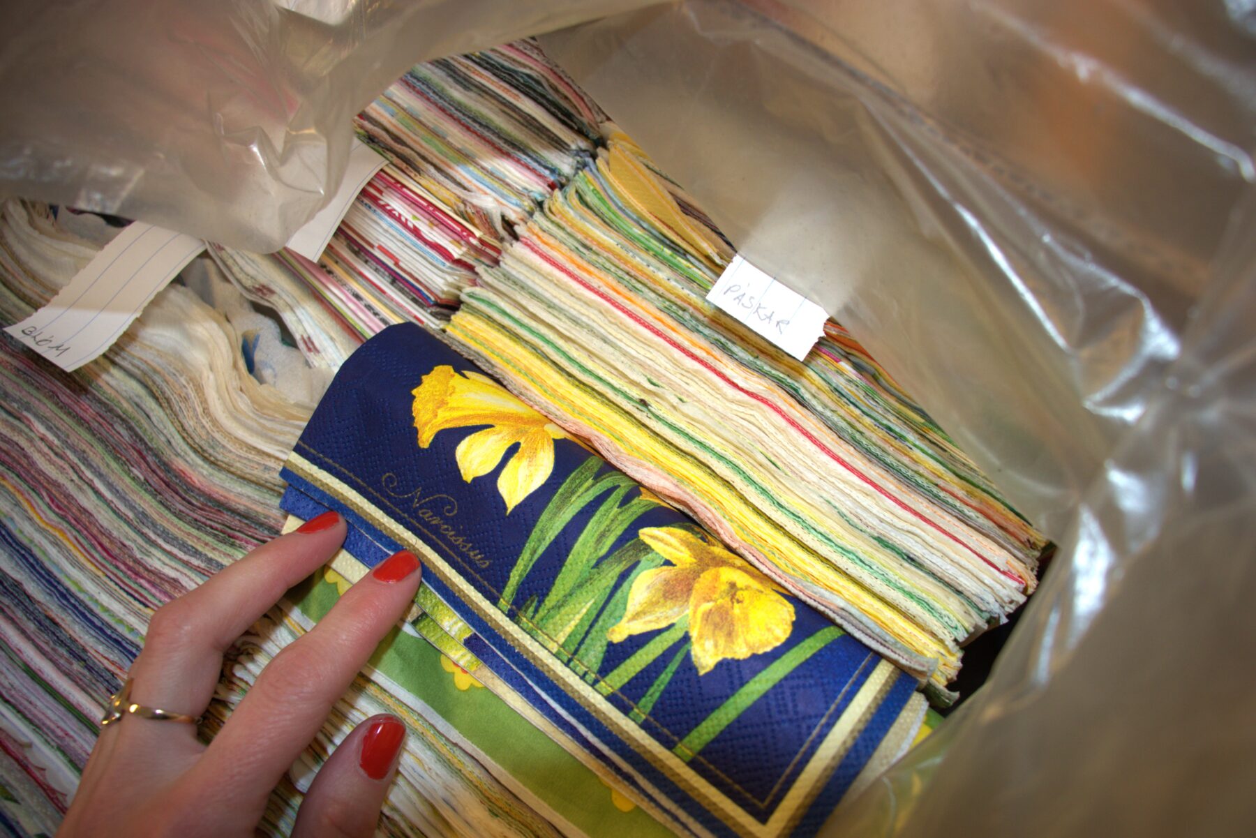 „Ég byrjaði að kynnast servíettusöfnun austur á Norðfirði þar sem ég fæddist og bjó til 9 ára aldurs, þannig var að allar servíettur voru mjög svo verðmætar því lítið var til af þeim og þær því sparaðar og endurnýttar við hvert tækifæri og við gerðum líka kjóla á dúkkulísur úr þeim og allskyns skraut, engu hent í þá daga.