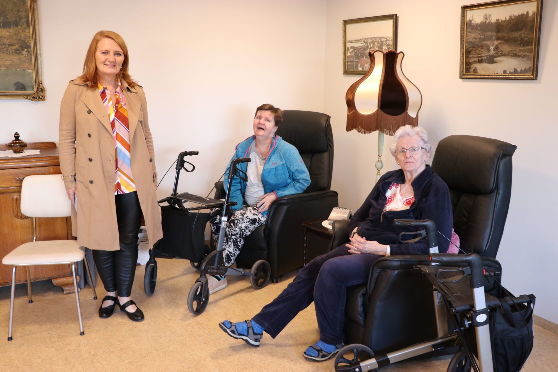 Dagdvöl á Sólvangi var opnuð í gær eftir miklar endurbætur á húsnæðinu og er óhætt að segja að notendur þjónustunnar hafi mætt glaðbeittir til leiks að nýju eftir ansi langa fjarveru. Dagdvölinni var upphaflega lokað vegna Covid19 faraldursins í byrjun mars og í framhaldinu farið af stað með viðamiklar endurbætur á fyrstu hæð í eldri hluta Sólvangs sem hýst hefur dagdvölina um árabil. Aðstaðan er orðin hin glæsilegasta, í senn heimilisleg og hlýleg sem fellur afar vel að fallegu umhverfi Sólvangs. Bæjarstjóri Hafnarfjarðar, Rósa Guðbjartsdóttir, leit við í stutta stund á Sólvangi á þessum fyrsta degi dagdvalar eftir langt hlé en formleg opnun og opið hús mun eiga sér stað þegar aðstæður leyfa og létt hefur verið á öllum takmörkunum.
