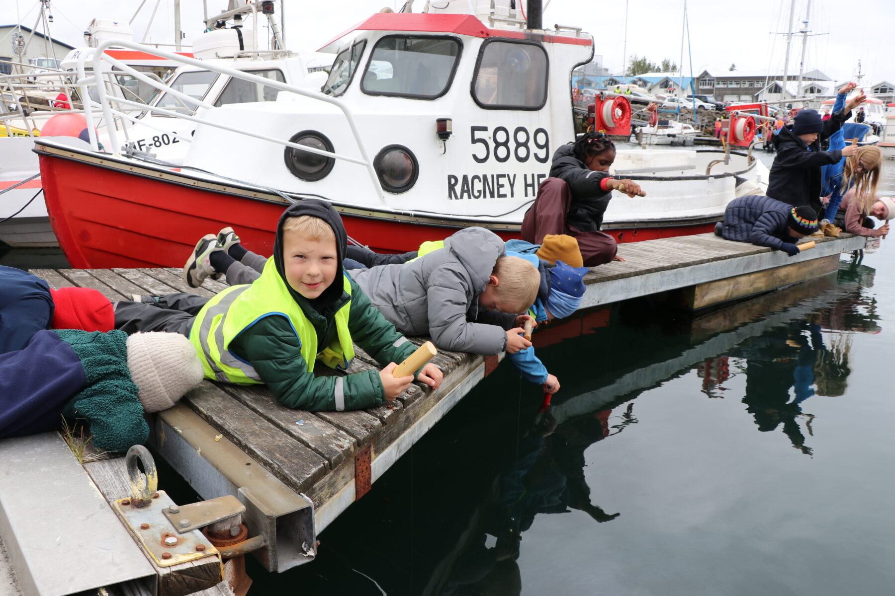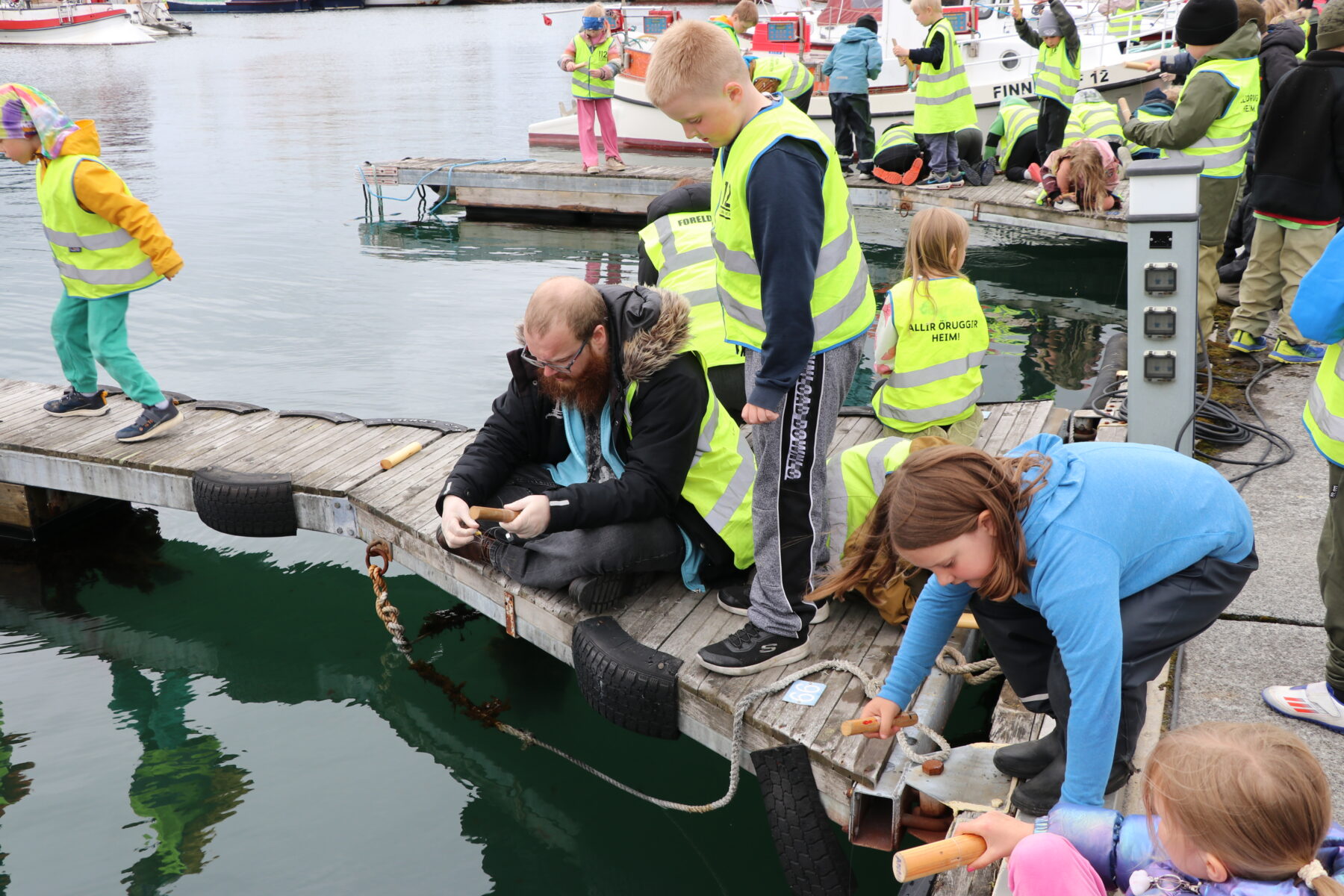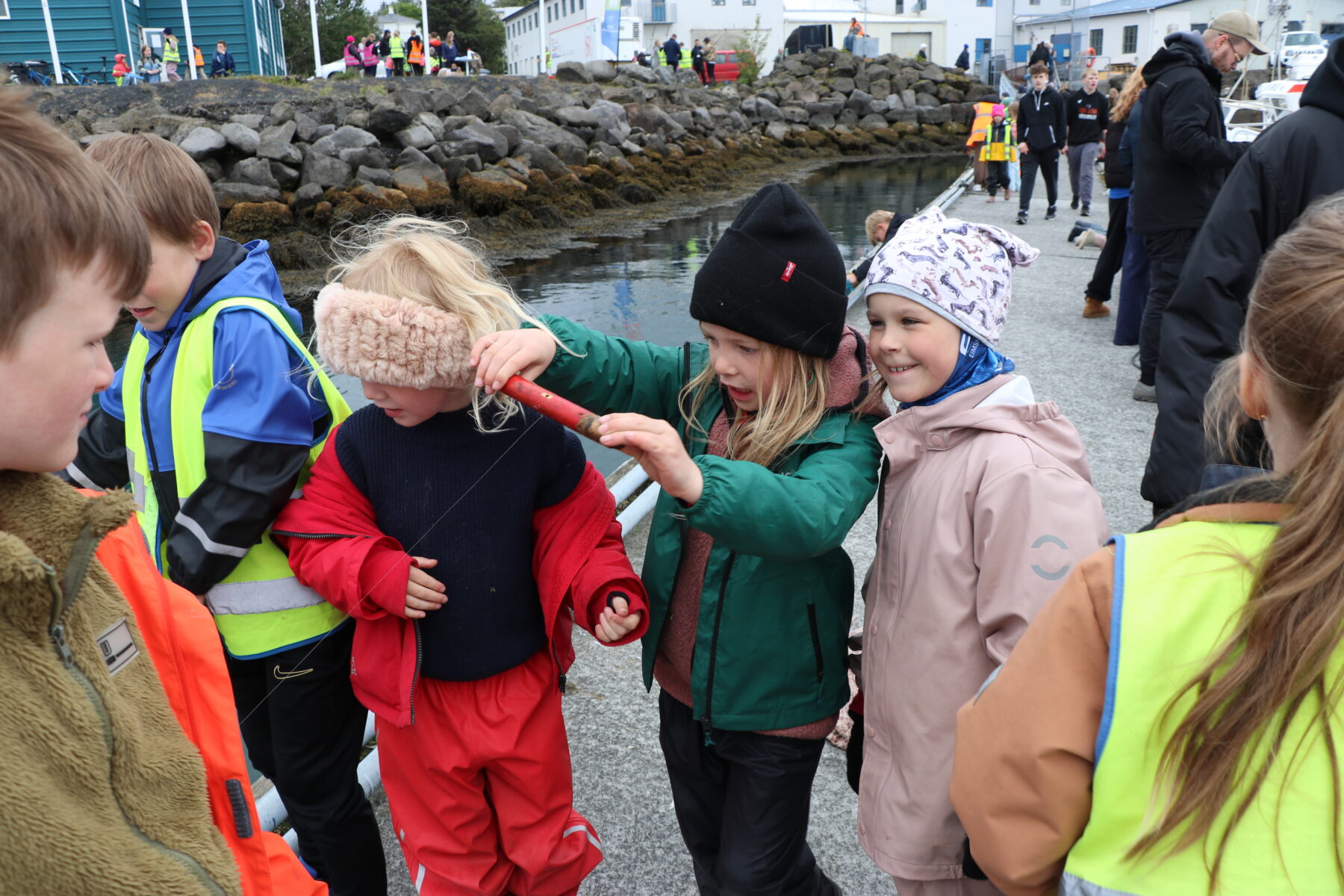 Á fimmta hundrað 6-12 ára hafnfirsk börn og starfsmenn tóku þátt í árlegri dorgveiðikeppni á Flensborgarhöfn í dag. Um 40 fiskar veiddust í heildina. Sumum var sleppt strax en skráðir.