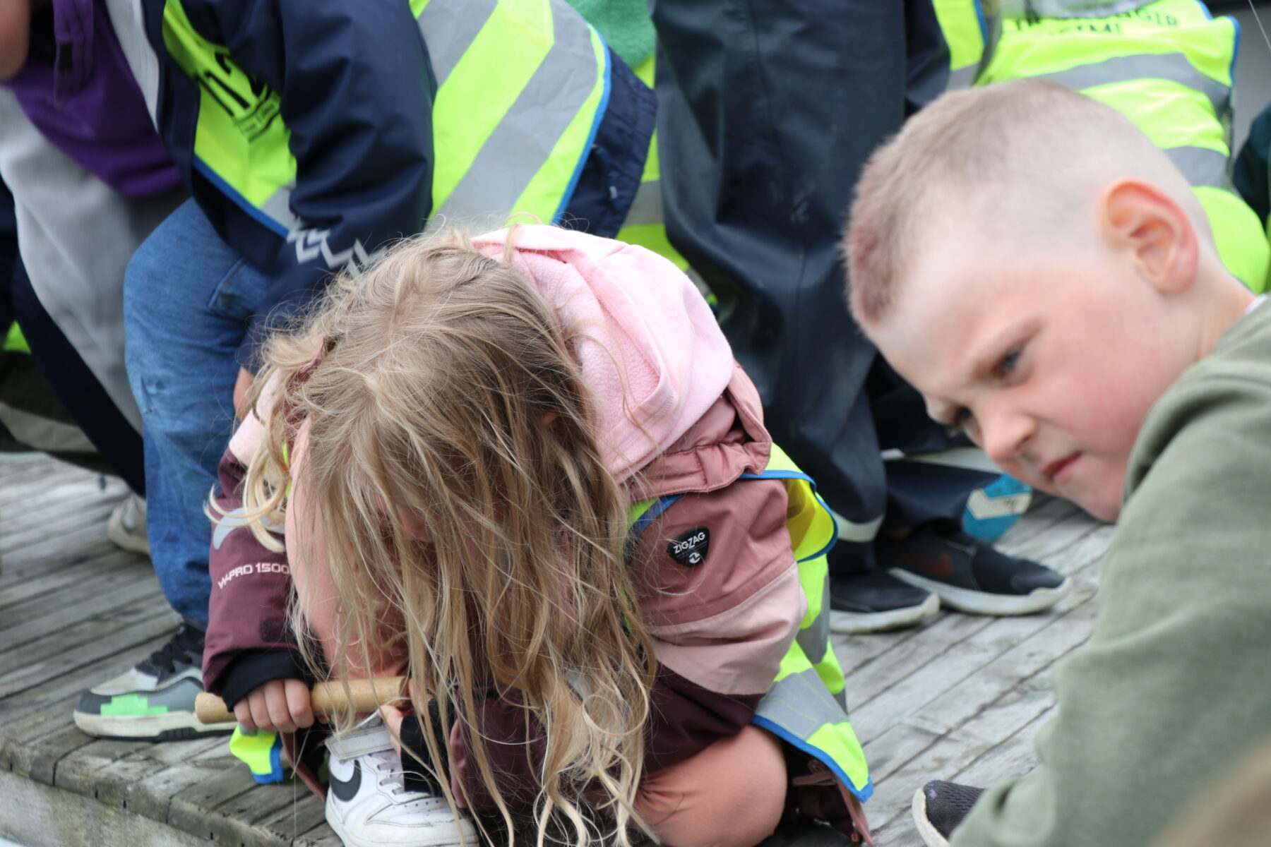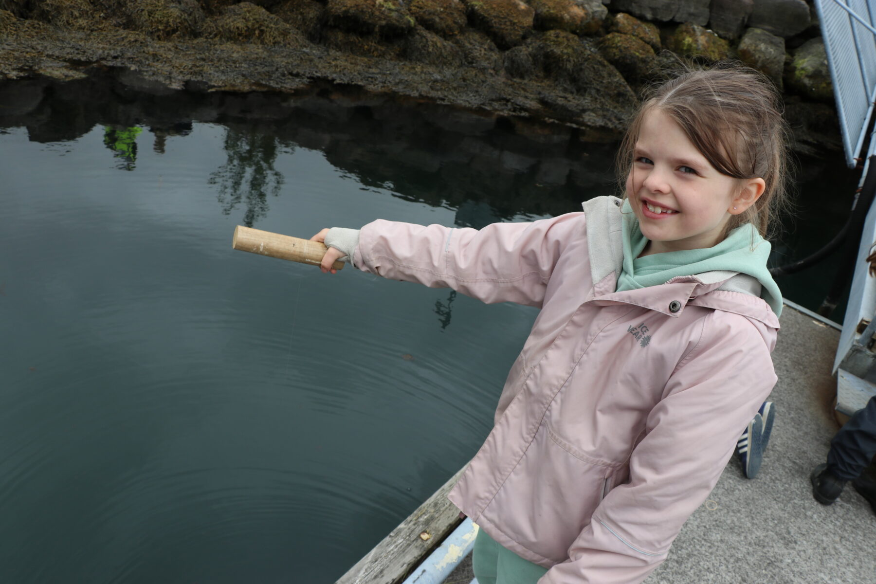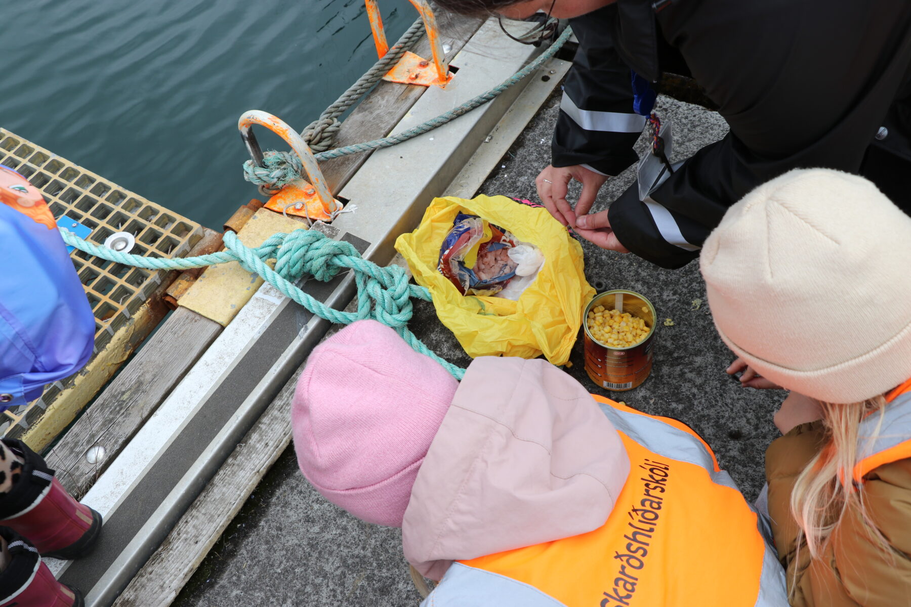 Á fimmta hundrað 6-12 ára hafnfirsk börn og starfsmenn tóku þátt í árlegri dorgveiðikeppni á Flensborgarhöfn í dag. Um 40 fiskar veiddust í heildina. Sumum var sleppt strax en skráðir.