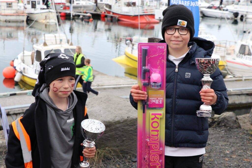 Stærsti fiskurinn sem veiddist í dag var 351 g ufsi. Óliver Leó veiddi fiskinn og fékk veiðistöng og bikar fyrir. Það fengu einnig Reynir Máni og Nikulás Högni sem voru afklær Flensborgarhafnardorgveiðikeppninnar í ár. Þeir veiddu 6 fiska hvor.