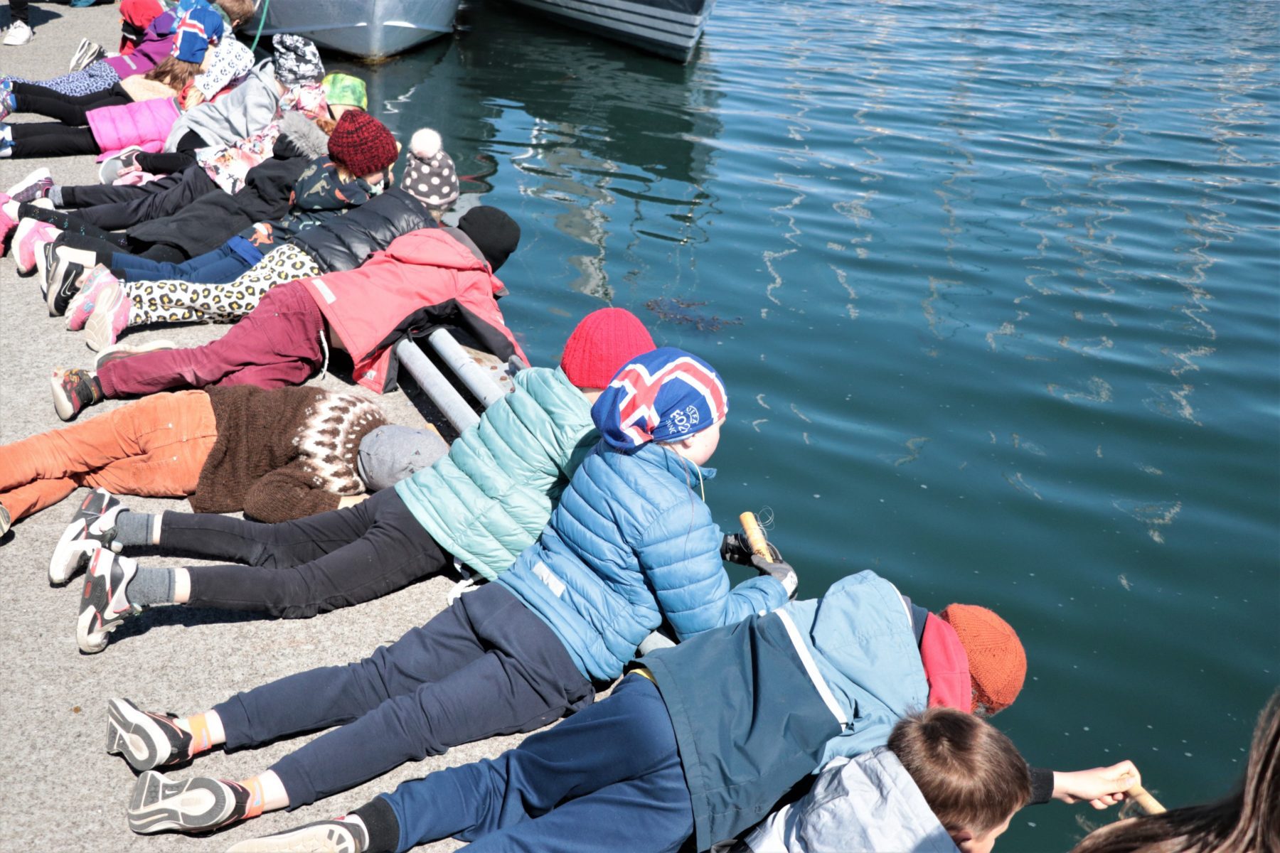 Hátt í 500 börn og ungmenni á aldrinum 6-12 ára tóku þátt í dorgveiðikeppni á Flensborgarhöfn í Hafnarfirði. Hafnarfjarðarbær hefur staðið fyrir þessari keppni í áratugi og hefur áhuginn og þátttakan vaxið með hverju árinu. Nú er svo komið að keppnin er orðin ein fjölmennasta dorgveiðikeppni landsins og hundruðir barna bíða spennt eftir því ár hvert að munda færin og spreyta sig við að veiða furðulegasta fiskinn, stærsta fiskinn og flestu fiskana.