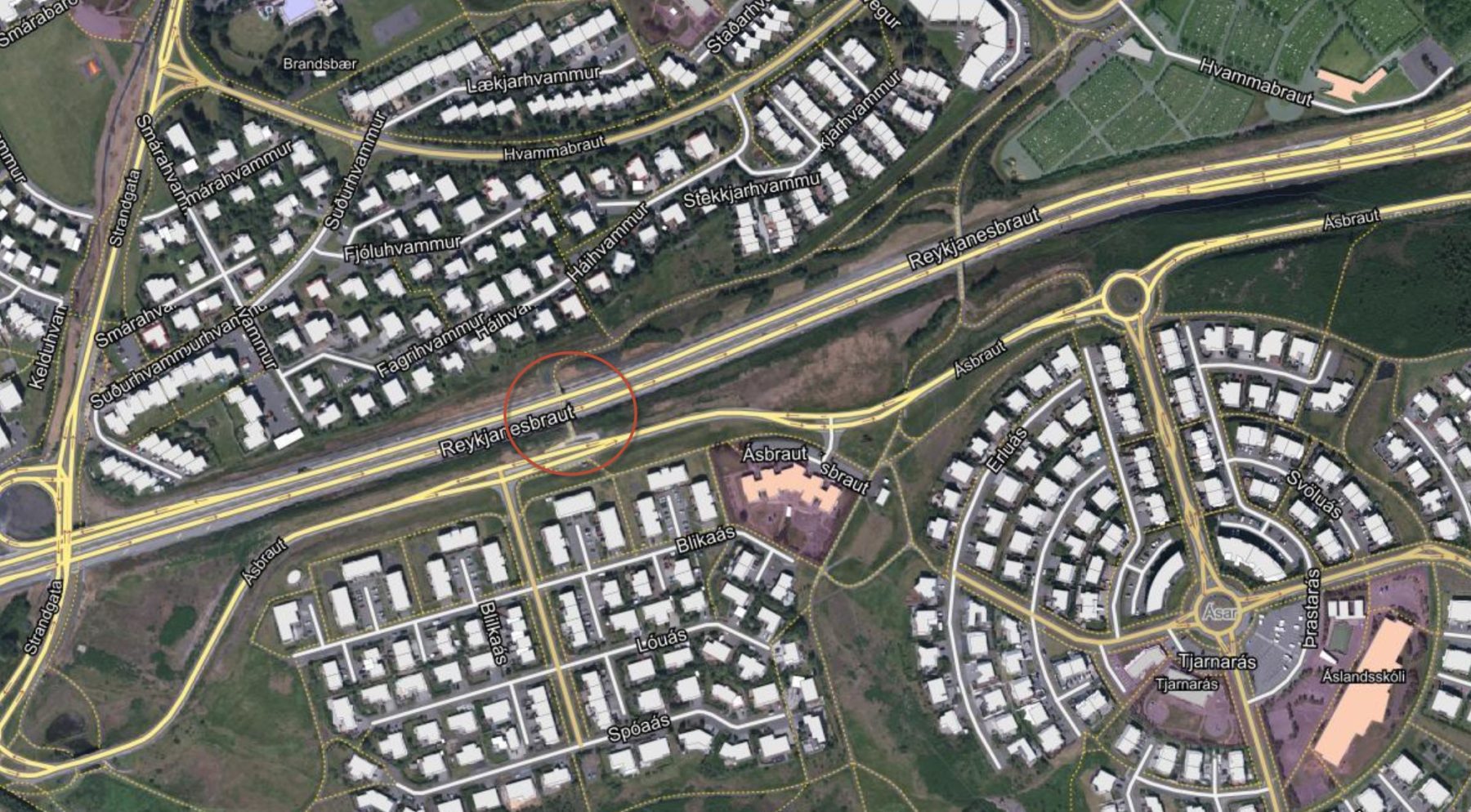 Göngubrúin milli Áslands- og Hvammahverfis er lokuð um óákveðinn tíma vegna tjóns. Göngubrúin er önnur tveggja göngubrúa sem byggðar voru yfir Reykjanesbraut við tvöföldun hennar og opnuðu á árinu 2020.