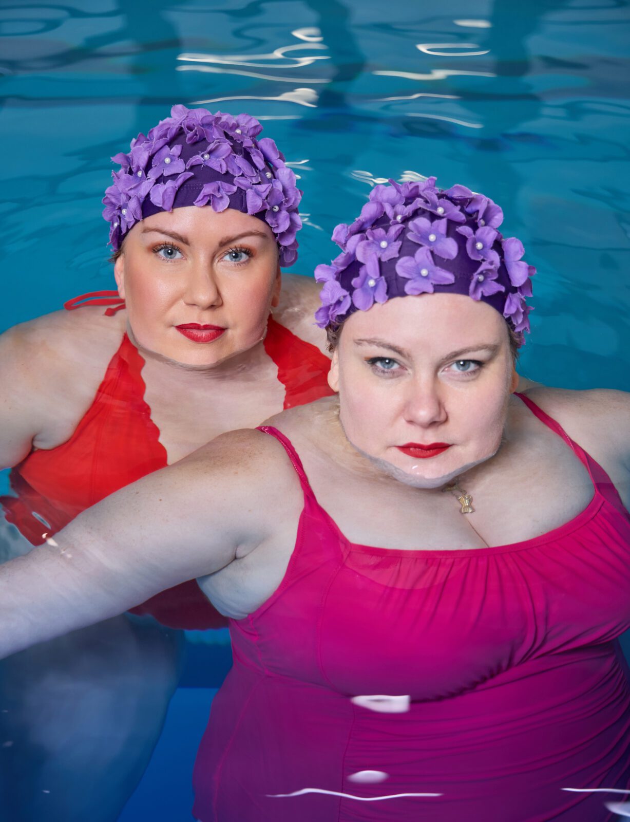 „Fólk tekur þátt í þessu, þetta er ekki sýning,“ segir Margrét Erla og rekur söguna þegar þær systur stofnuðu sundballettinn. „Við systir mín vorum í Barcelona með mömmu og þegar mamma er í sólarlöndum er hún leðurtaskan á bakkanum. Við systur þurfum útrás,“ lýsir Margrét Erla.