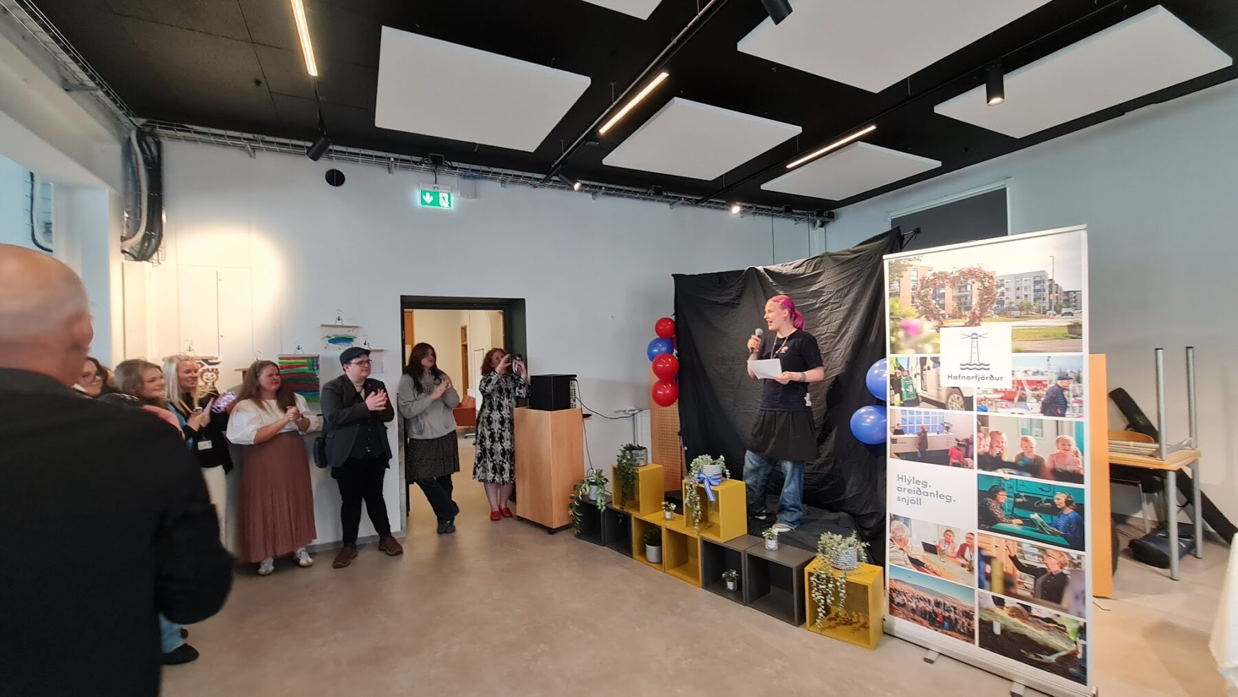 „Ég er svo ánægð með þetta; að Hafnarfjörður sé loksins orðinn barnvænt sveitafélag eftir mörg ár af skipulagi og fundum og svo mikilli vinnu frá öllum sem komu að þessu,“ sagði Nína Sólveig Svavarsdóttir, fulltrúi ungmennaráðs á viðurkenningarhátíð í Nýsköpunarsetrinu.