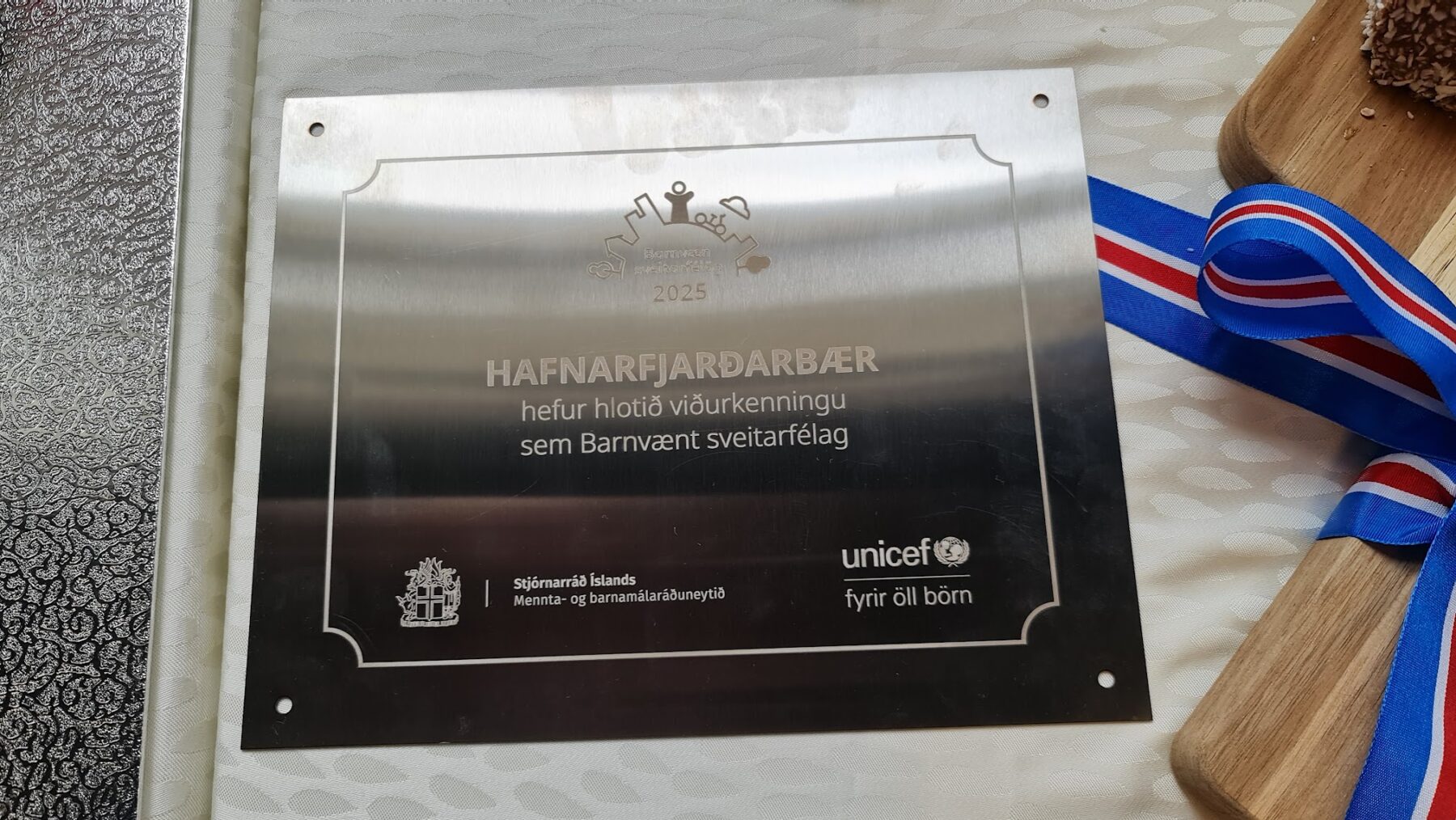 „Það er mikilvægt að muna að þetta er varða en ekki áfangastaður. Þið hafið náð gríðarlega miklum árangri í að tryggja þátttöku barna í starfsemi bæjarins og tryggja að starfsemi bæjarins sé betur sniðið að réttindum og þörfum barna, en það er heilmikið eftir,“ sagði hún og að UNICEF hlakkaði til að vinna áfram með bænum.