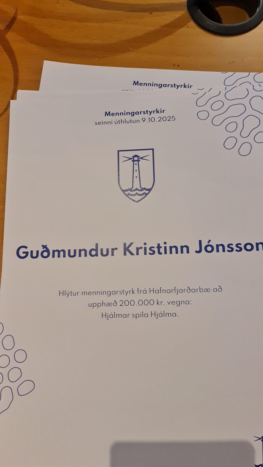 Fimm fengu menningarstyrk frá Menningar- og ferðamálanefnd Hafnarfjarðar síðdegis í gær.