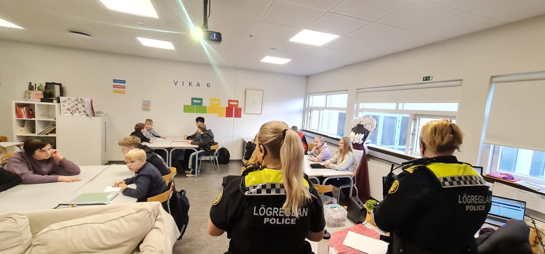Afar vel var tekið á móti Dagnýju Karlsdóttur og Ýr Steinþórsdóttur lögreglukonum þegar þær heimsóttu 8. bekki Öldutúnsskóla nú í morgun. Þær lögðu spurningar fyrir bekkina og fengu nemendurna til að spyrja spurninga og velta fyrir sér starfi þeirra og samfélaginu?