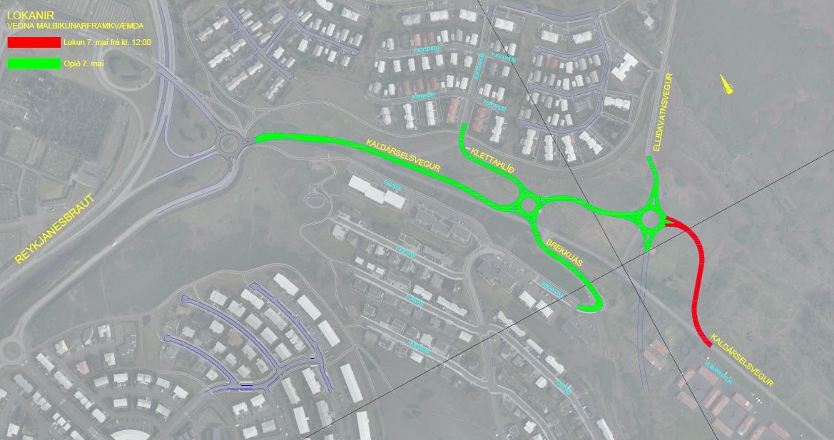 Tímabundin lokun á gatnamótum við Fjarðarhraun Posted maí 6, 2019 by avista Reykjanesbraut verður lokuð kl. 19 í kvöld, mánudaginn 6. maí, á gatnamótum við Fjarðarhraun hjá Kaplakrika í Hafnarfirði, vegna framkvæmda. Umferð á Reykjanesbraut mun aka hjáleið um Fjarðarhraun og hringtorg við Flatahraun / Kaplakrika. Umferð frá Fjarðarhrauni sem ætlar til austurs inn á Reykjanesbraut er beint á að aka Reykjanesbraut og fara um hringtorg við […]
