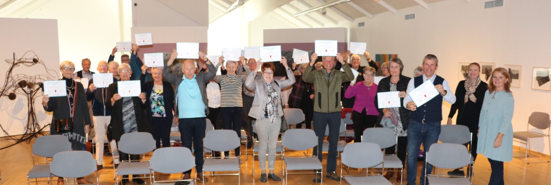 Formleg útskrift úr verkefninu Fjölþætt heilsuefling 65+ í Hafnarfirði – leið að farsælum efri árum á vegum Janusar heilsueflingar fór fram í Hafnarborg í vikunni. Geislandi hópur þátttakenda sem lokið hafa þessu tveggja ára verkefni mættu til útskriftar, tóku á móti útskriftarskírteini og samfögnuðu með hópnum sem æft hefur saman undir handleiðslu Janusar Guðlaugssonar og hans öfluga teymis.