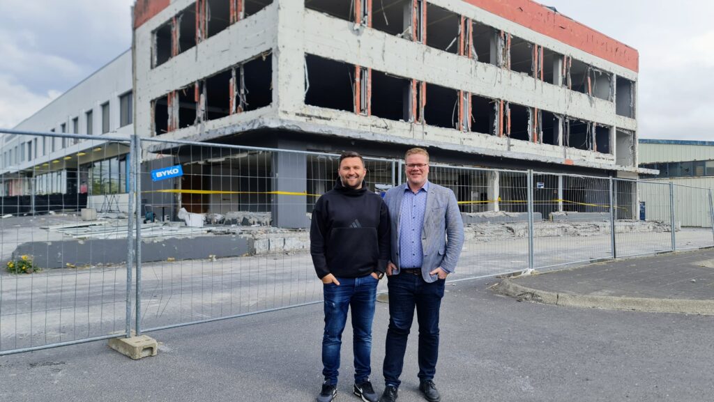 Ólafur Páll Snorrason, framkvæmdastjóri OS bygginga ehf. tók á móti bæjarstjóranum ásamt fleirum og upplýsti að stefnt væri að því að rífa húsið í áföngum, grafa fyrir kjallara og steypa upp. Búast megi við því að hann verði uppsteyptur í desember.