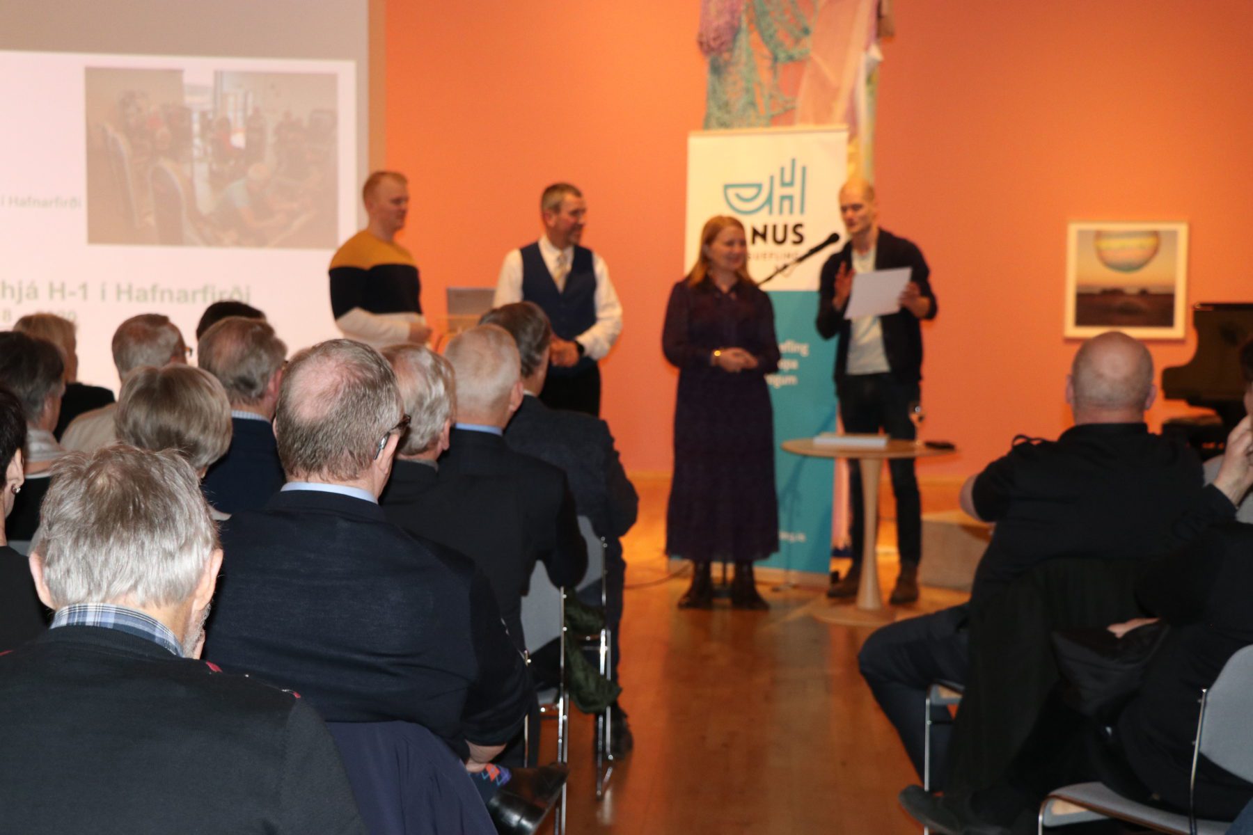 Frá útskrift hópsins í Hafnarborg – Rósa bæjarstjóri og flotta teymið á bak við Janus heilsueflingu afhentu viðurkenningar.