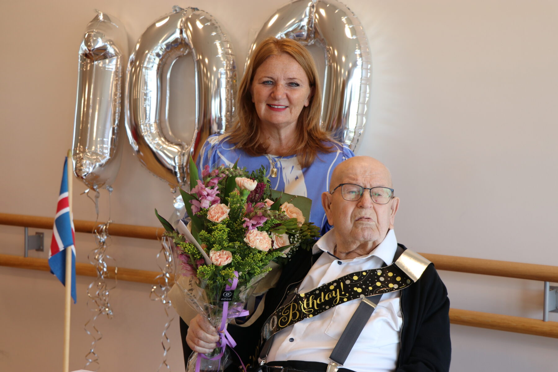 Gaflarinn Gunnar Már Torfason fagnar 100 ára afmæli í dag. Gunnar, eða Gunni Mössu eins og hann er jafnan kallaður, fæddist í Hafnarfirði 24. júní 1924. Hann býr í dag í góðu yfirlæti á Hvaleyri á Sólvangi þangað sem hann flutti 97 ára að aldri. Gunnar fagnar tvöfalt í dag, bauð í kaffi og köku á Sólvangi fyrri hluta dags fyrir íbúa og gesti og heldur aðra veislu fyrir fjölskyldu og vini. Forseti Íslands, Guðni Th. Jóhannesson fagnar einnig afmæli í dag og munu þeir félagar hittast síðdegis og fagna saman. Rósa Guðbjartsdóttir bæjarstjóri kíkti í afmæliskaffi á Sólvang og færði Gunnari Má blómvönd og súkkulaði með fallegum kveðjum frá bænum. Hjartanlega til hamingju með daginn báðir tveir!