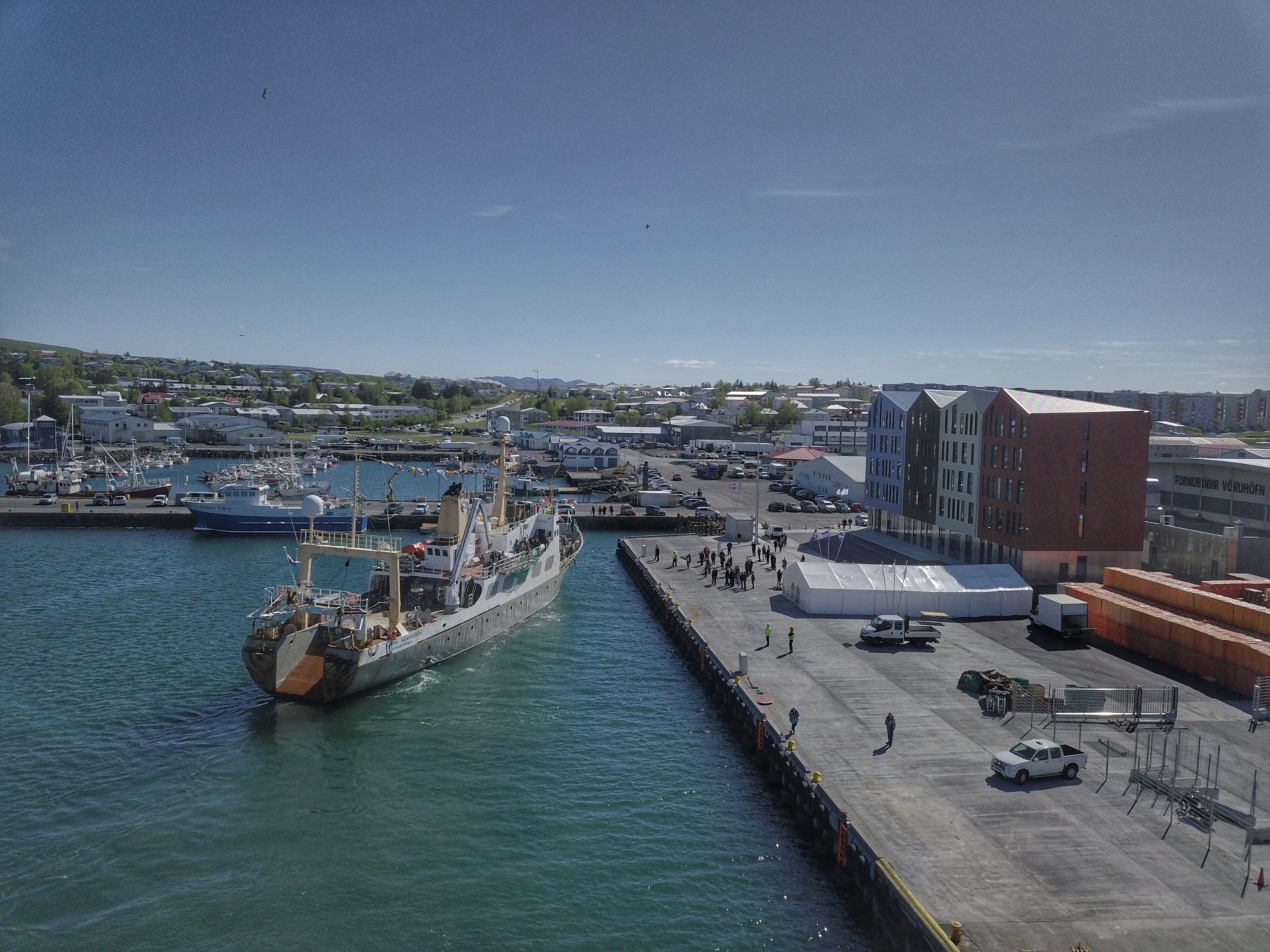 Hafrannsóknarstofnun (Hafró) er flutt til Hafnarfjarðar. Samningur um nýtt húsnæði var undirritaður í febrúar 2018 og fyrsta skóflustungan tekin í mars sama ár. Nú fyrir helgi var húsnæðið að Fornubúðum 5 opnað formlega með táknrænum hætti þar sem forseti Íslands, sjávarútvegsráðherra, ráðuneytisstjóri, forstjóri, starfsfólk stofnunarinnar og fleiri gestir kvöddu fyrri heimkynni Hafró að Skúlagötu 4 og sigldu á rannsóknarskipunum, Árna Friðrikssyni og Bjarna Sæmundssyni, frá Faxagarði í nýja heimahöfn í Hafnarfirði.