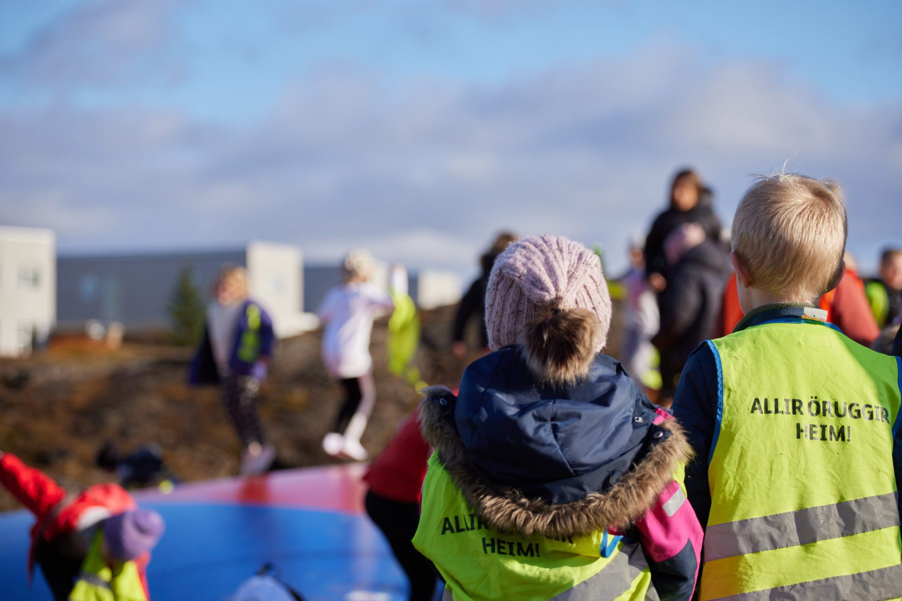 Nýr ærslabelgur og sá fjórði í Hafnarfirði hefur nú risið á lóð Hraunvallaskóla og geta nemendur við skólann og kátir krakkar á Völlunum og vonandi víðar notið þess að hoppa á belgnum á meðan veður leyfir.