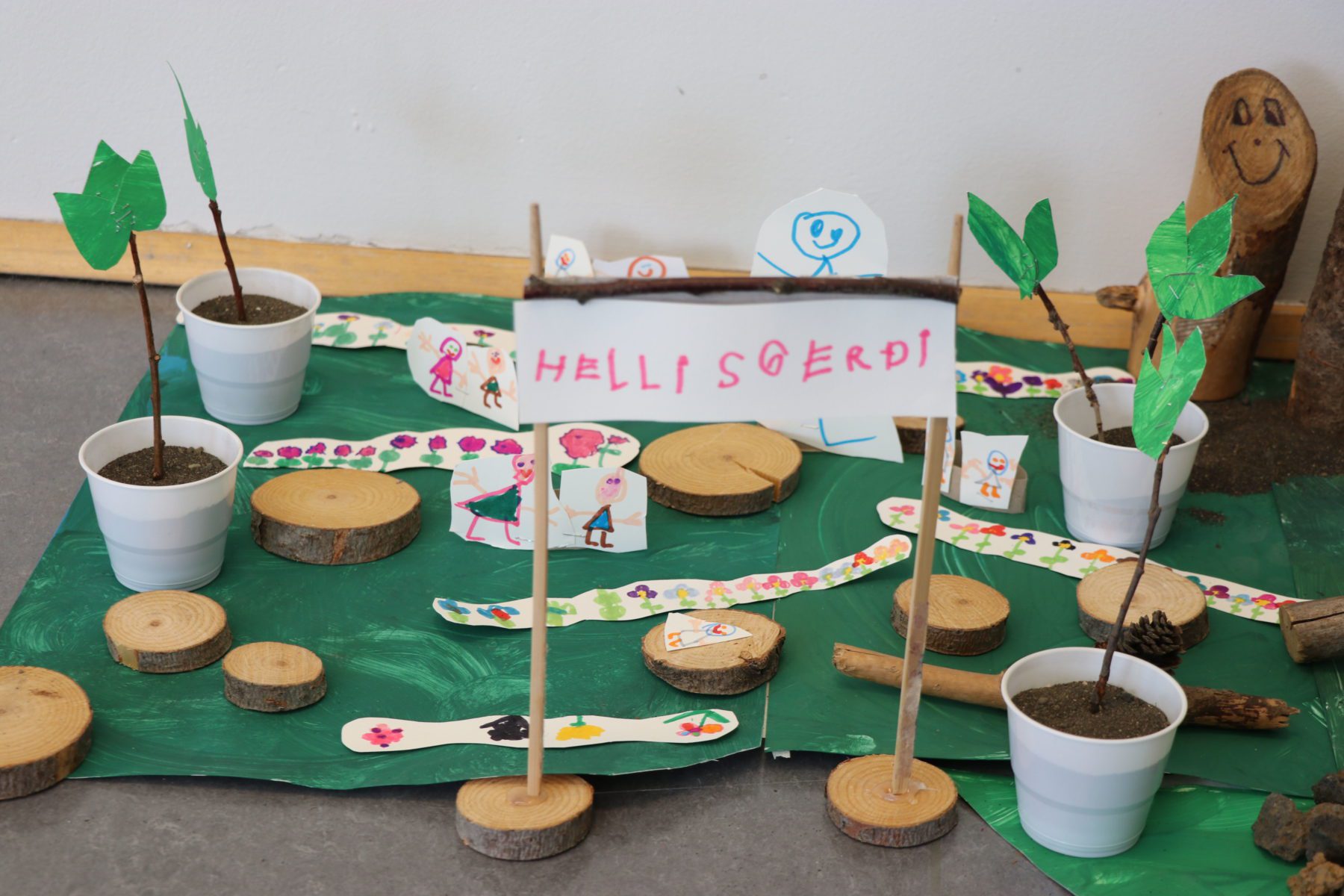 Heimsókn krakkanna endaði með heimboði til bæjarstjóra um að sækja útskriftarsýningu þeirra í leikskólanum. Bæjarstjóri þáði heimboð með þökkum og átti góða stund á leikskólanum. Í rúmlega 20 ár hefur verið haldið í þá hefð að útskriftarhópur leikskólans setji upp sýningu sem endurspeglar og sýnir þær byggingar sem krakkarnir sjálfir ákveða að taka fyrir hverju sinni. Í ár mátti þarna finna leikskólann sjálfan, Hellisgerði, lögreglustöðina, Ásvallalaug, strætó, hressa Hafnfirðinga og fleira skemmtilegt.
