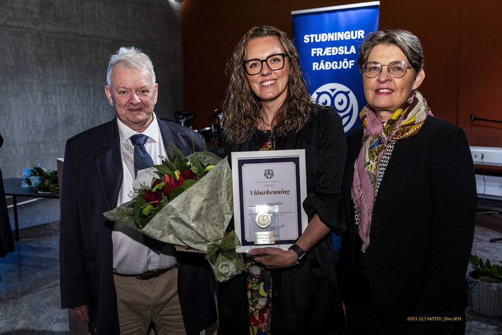 Vala Steinsdóttir, formaður Foreldraráðs Hafnarfjarðar var valinn Dugnaðarforkur Heimilis og skóla 2025, en þau verðlaun hlýtur einstaklingur sem hefur lagt sérlega mikið af mörkum í þágu nemenda og foreldra. Mynd/MOTIV