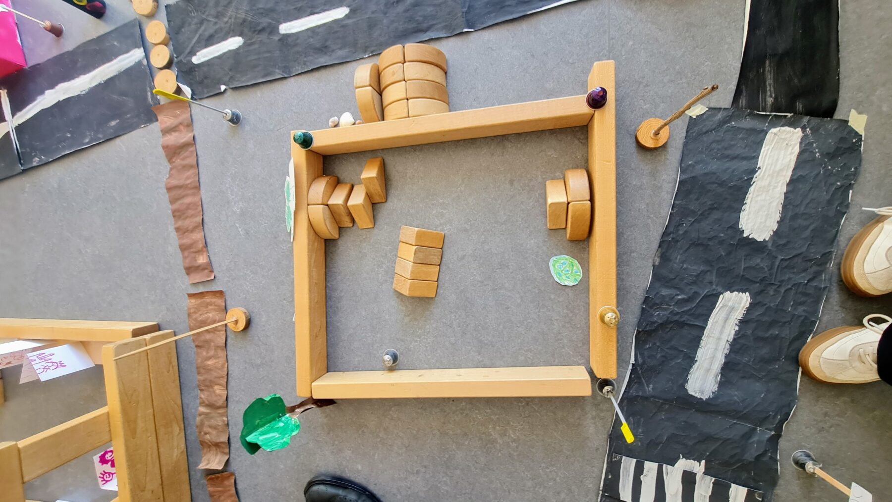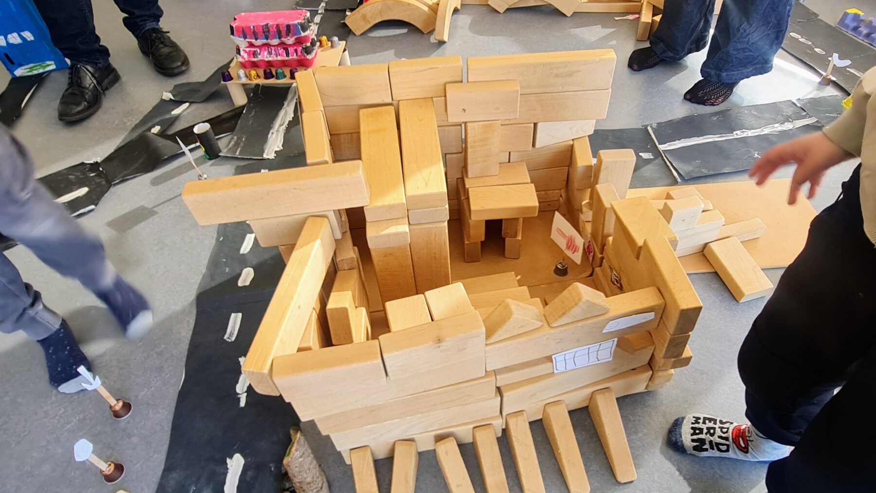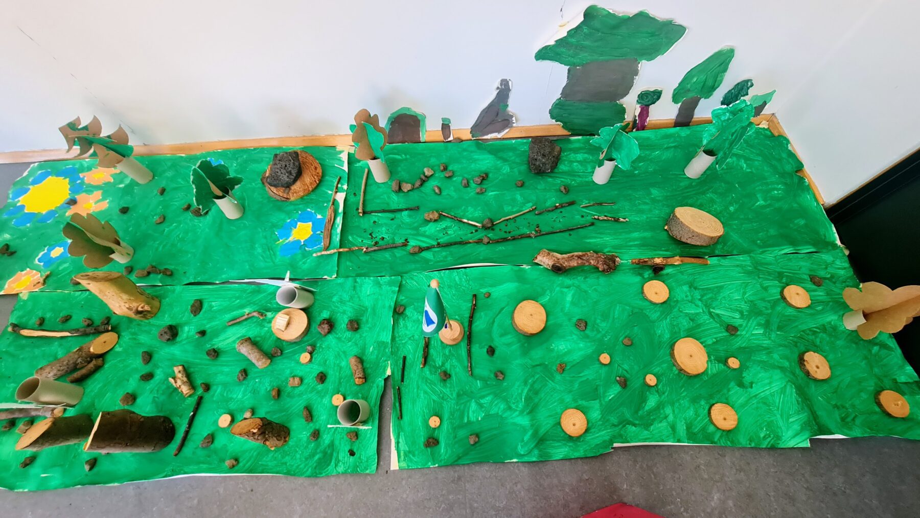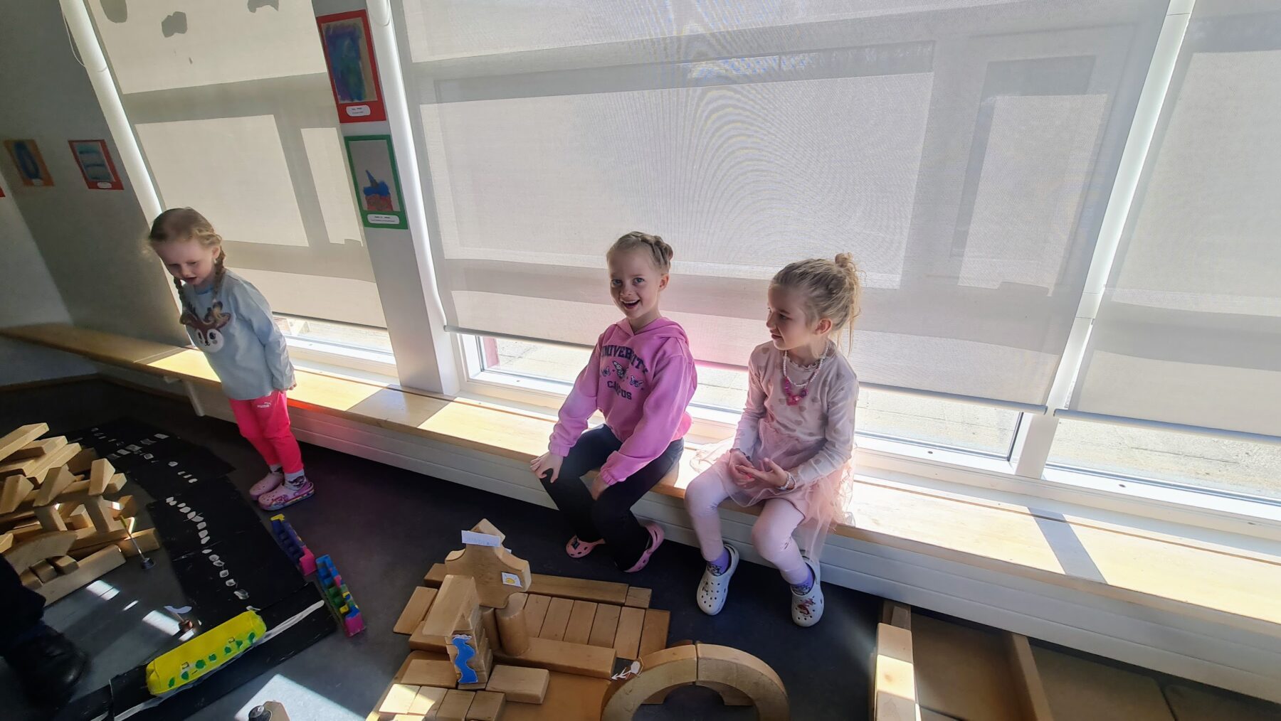 Útskriftarhópur barnanna á leikskólanum Hlíðarenda tók í morgun á móti bæjarstjóra og sýndi lokaverkefnið sitt, sérsniðinn bæ sem þakti allt gólf kennslustofunnar.