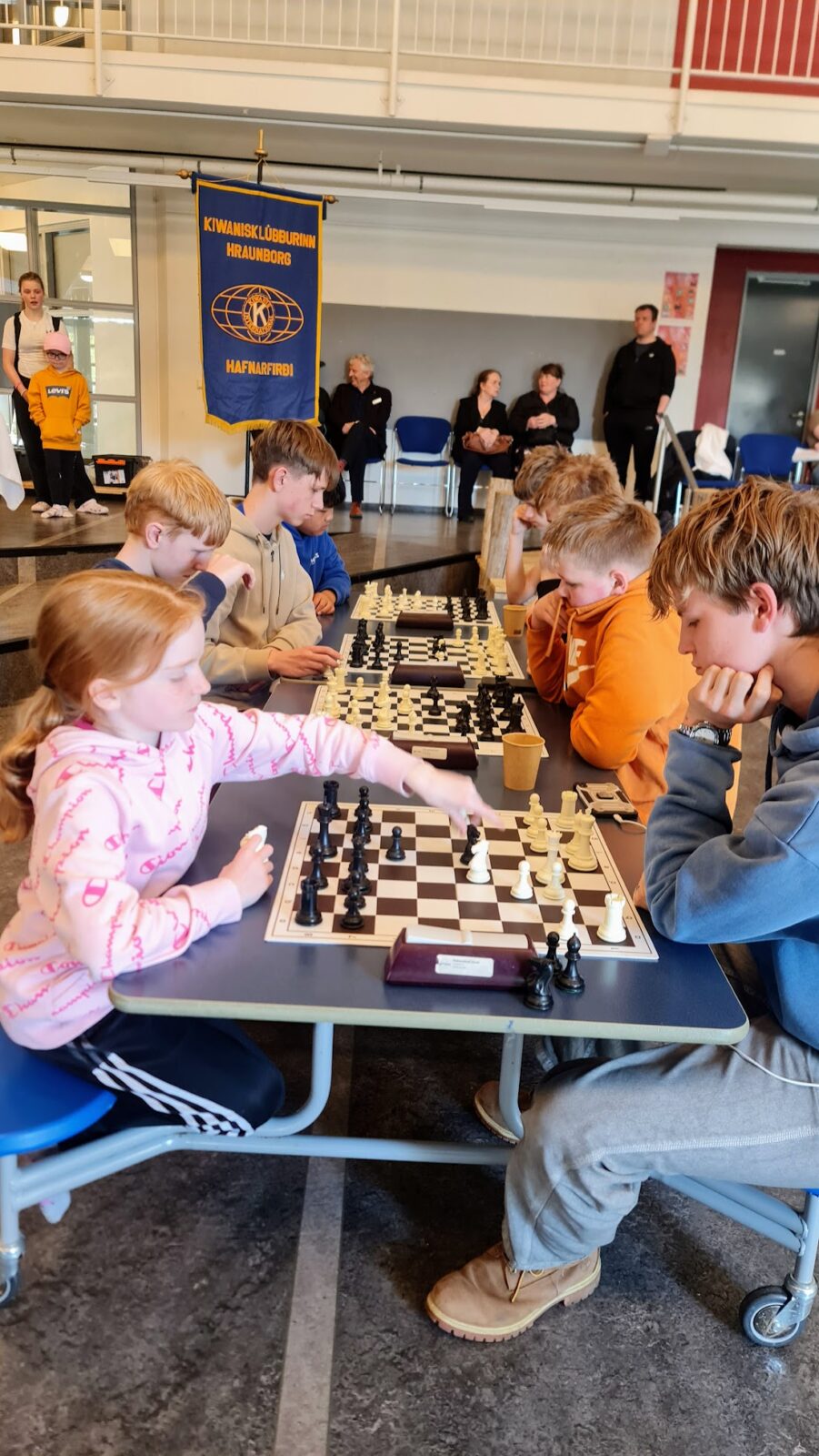 Kíwanisklúbburinn Hraunborg þakkar svo fyrir samstarfið góða við félagsmiðstöðvar grunnskólanna í Hafnarfirði. Einnig skólastjórnendum og liðsstjórum skáksveitanna fyrir að velja þær og undirbúa til þátttöku í skákmótunum. „En ekki síst þökkum við skákmönnunum sjálfum fyrir þátttökuna og drengilega skákkeppni. Við þökkum að auki Kristni Guðlaugssyni, skólastjóra Hvaleyrarskóla, fyrir að hefja skákmótið þar með nokkrum vel völdum hvatningarorðum og leika svo fyrsta leikinn í því og eins Valdimari Víðissyni, bæjarstjóra Hafnfirðinga, fyrir að gegna sama hlutverki í skákmótinu í Setbergsskóla. Og stjórnendum og frístundaleiðtogum þessara skóla þökkum við sérstaklega fyrir að hýsa skákmótin og hlúa vel að þeim.“