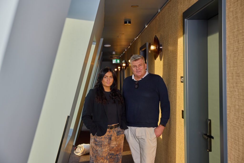 Feðginin Guðrún María og Guðmundur Bjarni Harðarson sofna jafnvel ofan í súpuskálina hlið við hlið við jólaborðið þetta árið. Saman hafa þau skipulagt og stýrt stækkun verslunarmiðstöðvarinnar Fjarðar ásamt góðu fólki fyrirtækisins. Einnig verða 18 hótelíbúðir í byggingunni og 31 lúxusíbúð í þessu hjarta Hafnarfjarðar. Þessi grein birtist í Jólablaði Hafnarfjarðarbæjar.