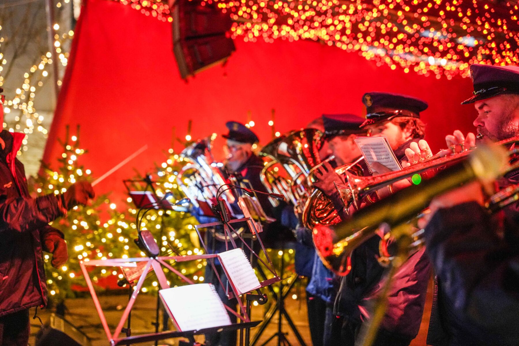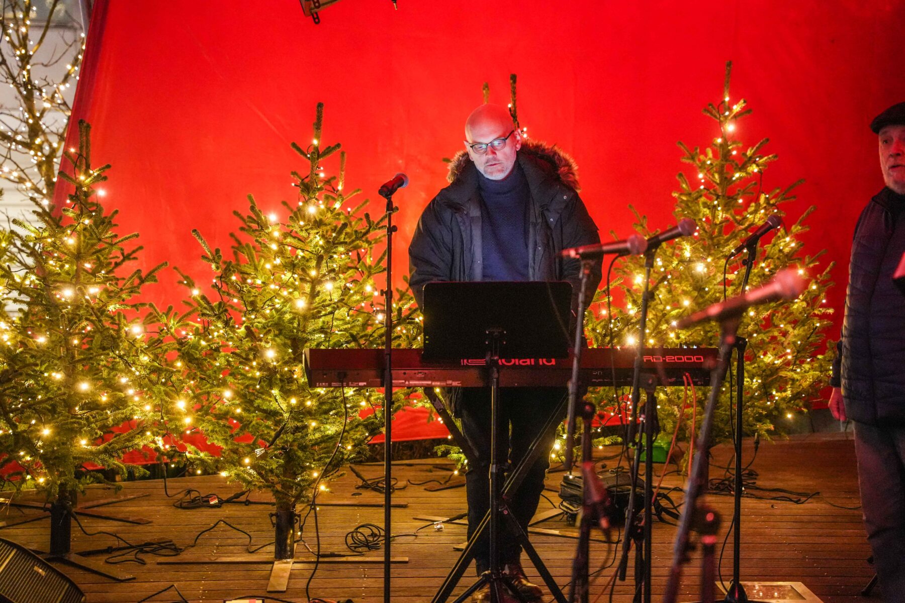 Karlakórinn Þrestir sungu og Lúðrasveit Hafnarfjarðar blés jólatóna. Þau Sylvía Melsted og Árni Beinteinn stýrðu för og athöfninni þegar kveikt var á Cuxhaven-jólatrénu, gjöf vinabæjar okkar, í 37. sinn.