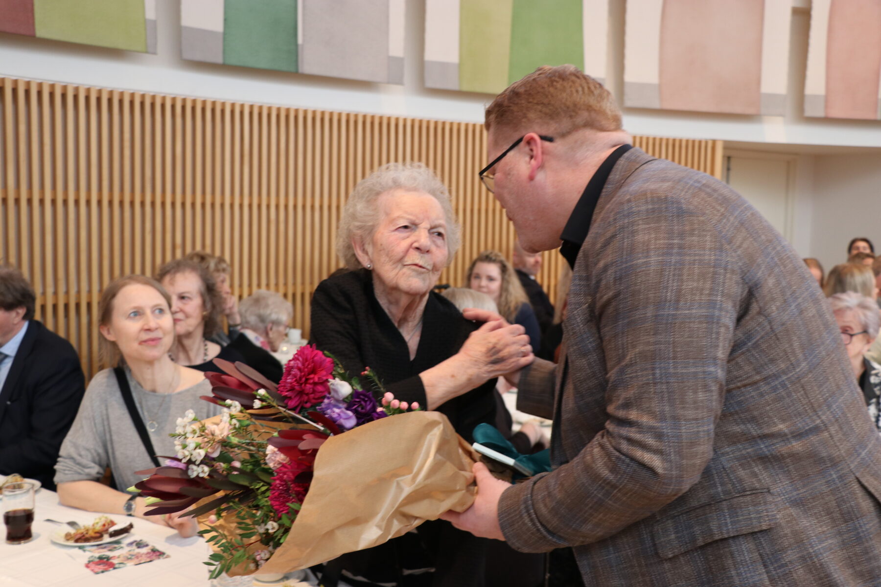 „Til hamingju,“ sagði Valdimar Víðisson bæjarstjóri þegar hann tók í höndina á Diddu, á 100 ára afmælinu hennar og færði henni blóm fyrir hönd bæjarbúa. Það var haldið í Hásölum. Afkomendur og vinir fögnuðu með henni. Stuðið var mikið. Margrét Pálma með kór, Una Torfa og sjálf hélt hún tölu.