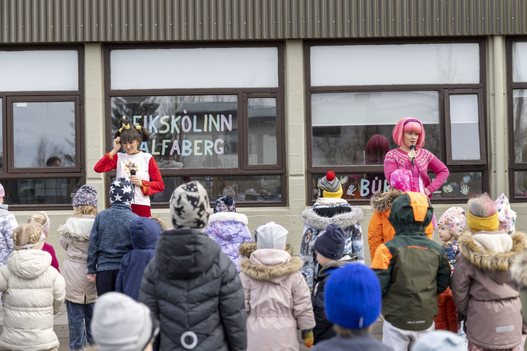 Solla stirða og Halla hrekkjusvín heimsóttu leikskólann Álfaberg fyrr í mánuðinum. Eins og sjá má þá vakti koma þeirra og skemmtun mikla kátínu.