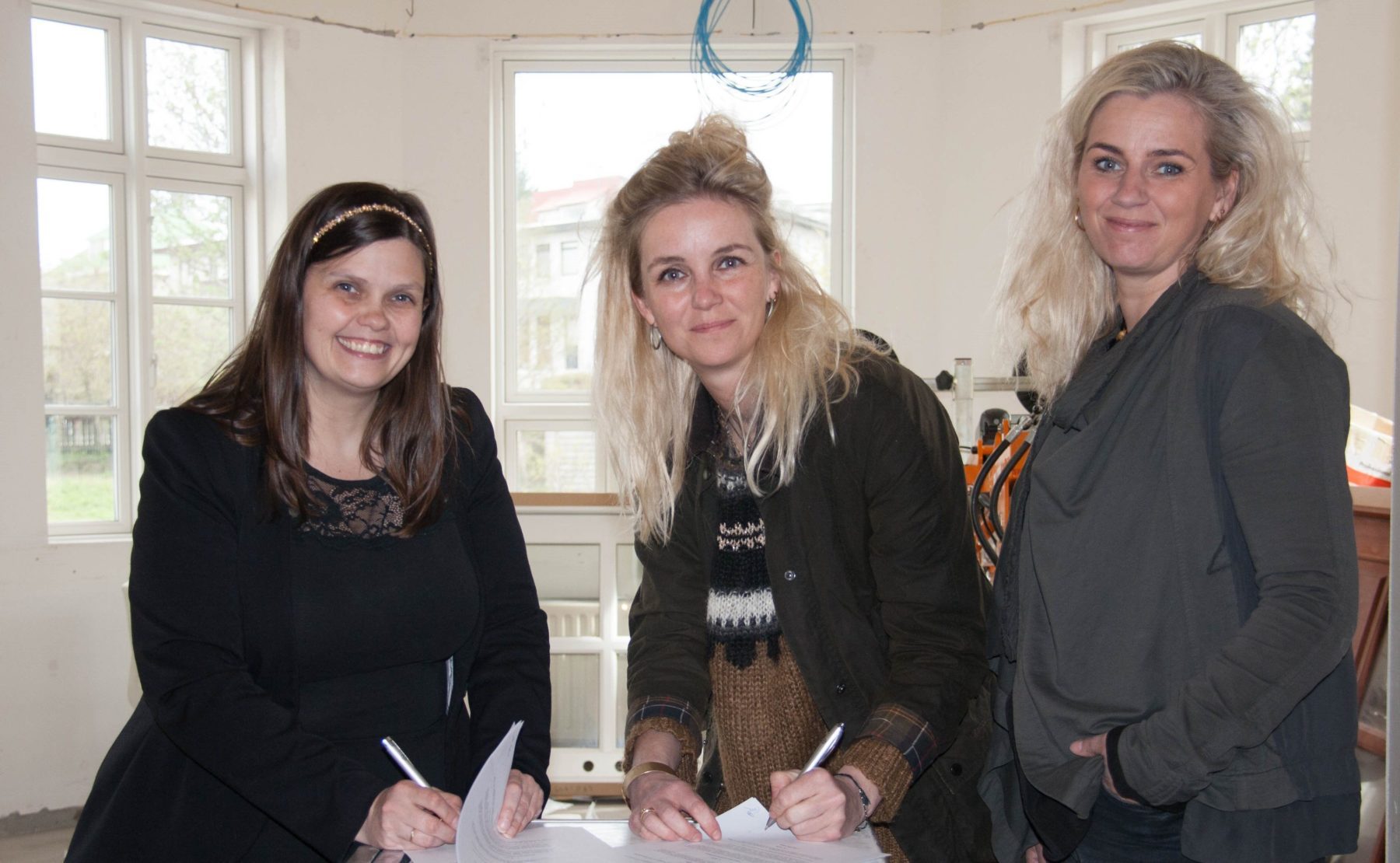 Hér má sjá Evu Michelsen verkefnastjóra Lífsgæðaseturs St. Jó. ásamt þeim Ingibjörgu Valgeirsdóttur og Guðbjörgu Björnsdóttur eigendum Saga Story House.