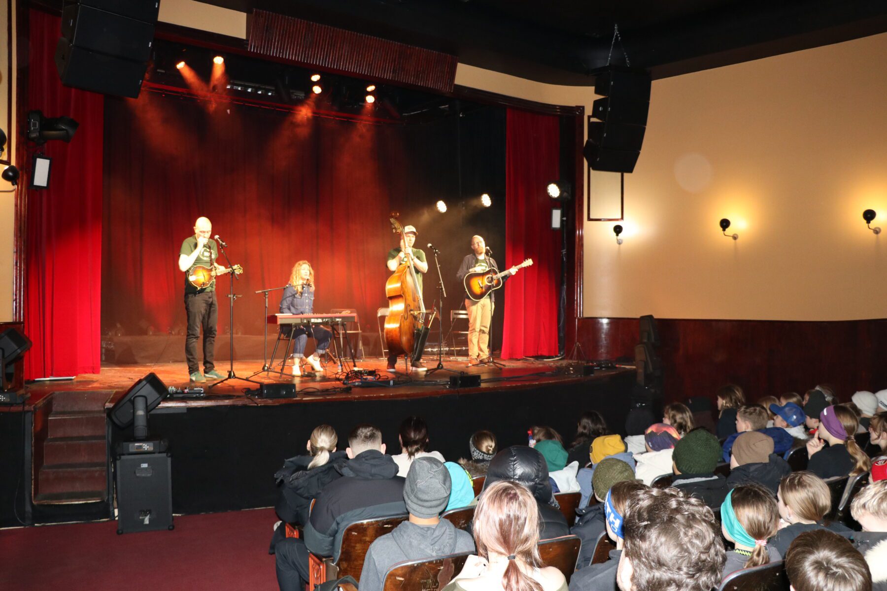Krakkar í 6. bekkjum hafnfirskra skóla nutu listar fyrir alla í bæjarbíói í morgun. Þá steig hljómsveitin Brek, undir nafninu…