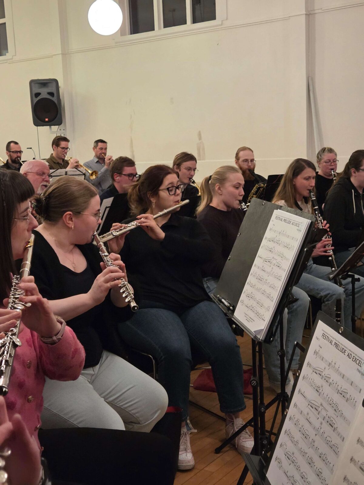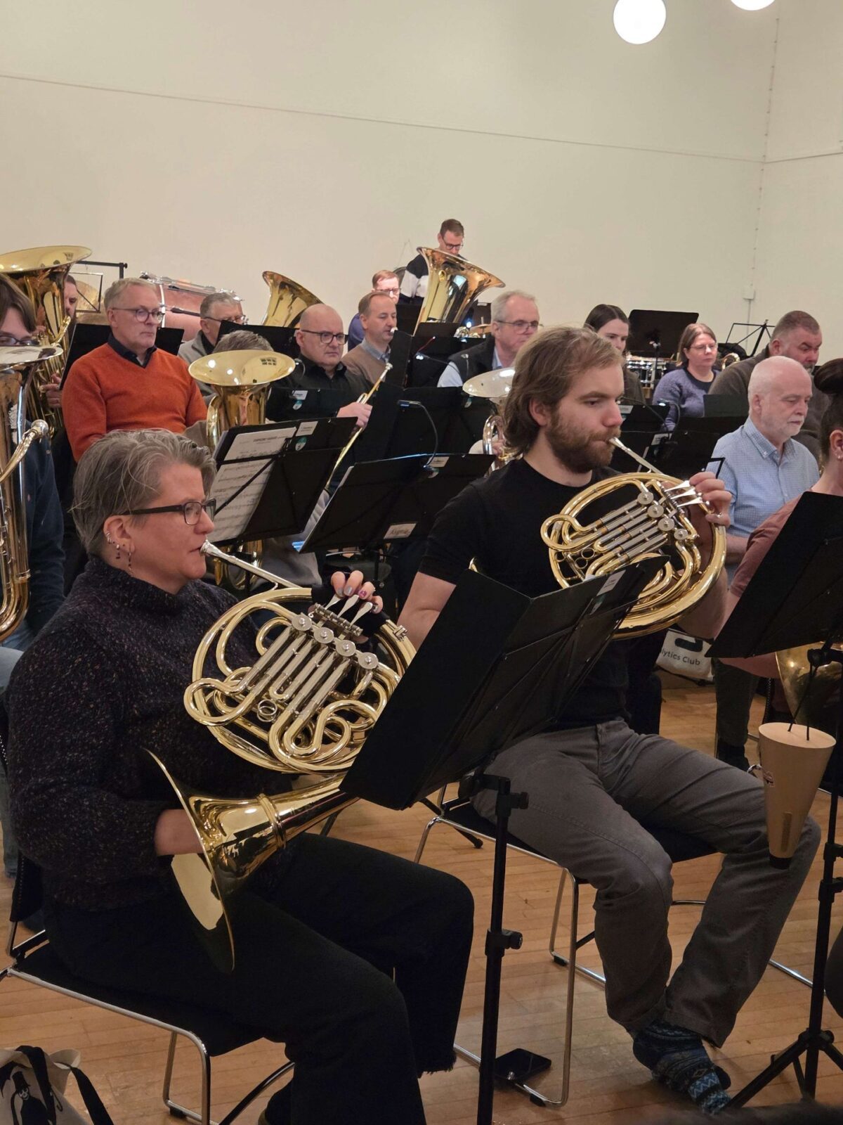 Um 45 æfa reglulega með lúðrasveitinni sem hittist einu sinni í viku. „Við æfum í Tónkvísl sem er hluti af Tónlistarskólanum. Fluttum þar inn upp úr aldamótum og erum í góðri sambúð við Tónlistarskólann,“ segir hann. Félagsmenn séu nú frá tvítugu á áttræðisaldur.