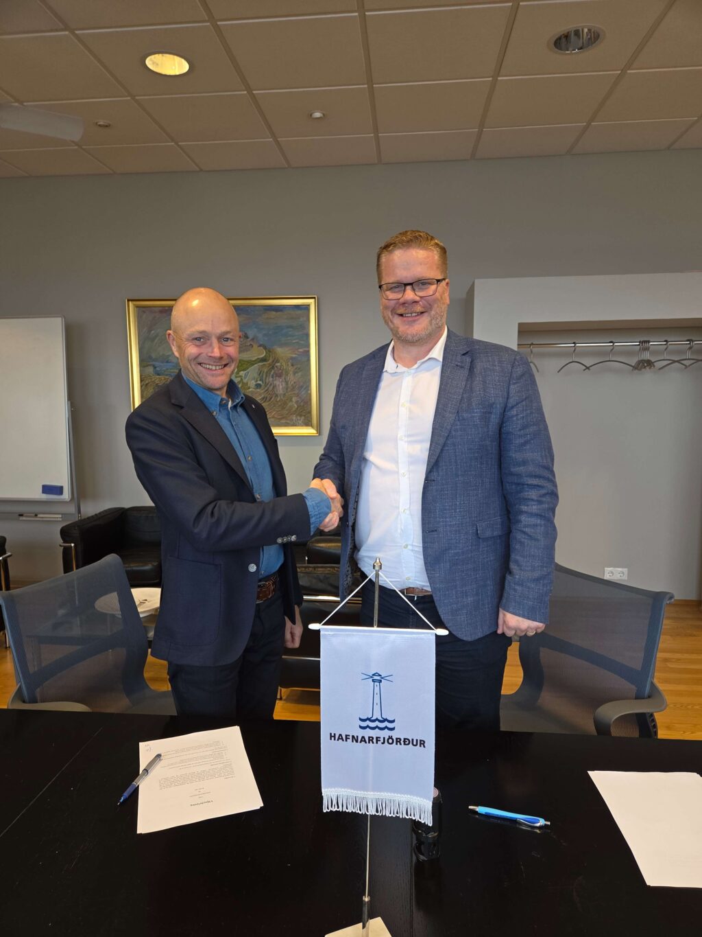 Kristinn Þór Geirsson, framkvæmdastjóri Krafts, og Valdimar Víðisson bæjarstjóri.