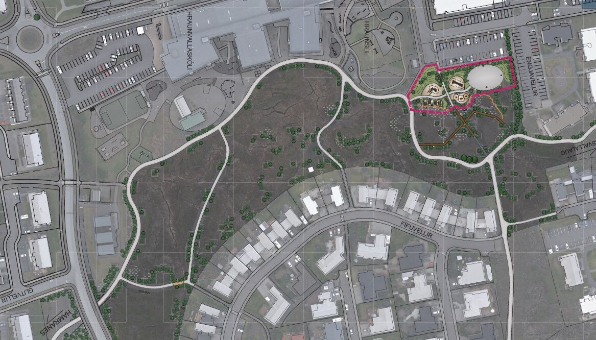 Framkvæmdir við nýjan hverfisgarð við Engjavelli hefjast í ágúst. Lagt er upp með að styrkja svæðið í kringum körfuboltavöll norðan við Hraunvallaskóla. Bætt verður við leiktækjum, gerðar manir og fallegum gróðri komið fyrir. Allt yfirborð svæðisins verður endurgert fyrir lok sumars 2025 og sett niður tvö ný og stór leiktæki.