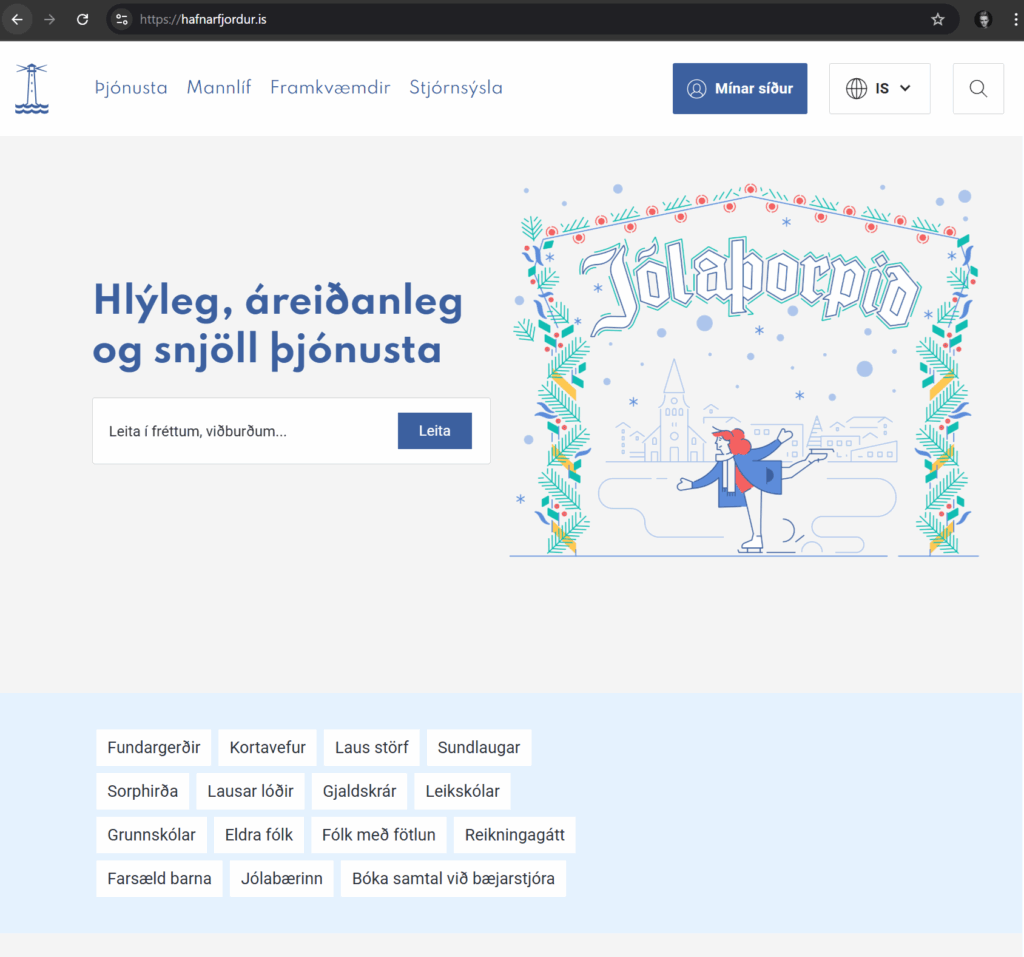 Hér má sjá skjáskot af forsíðunni. Neðst í hnappasúpunni leynist sá rétti.