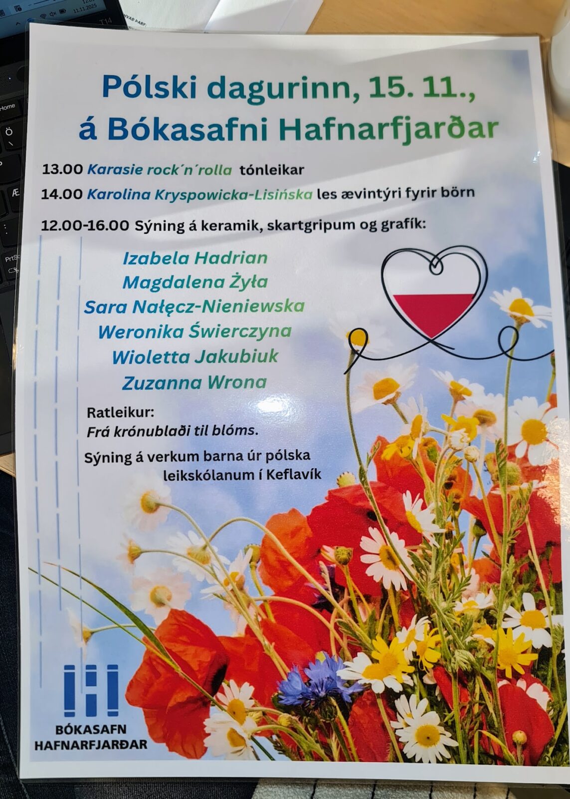 Dagskráin þétt og þemað í ár blóm en var hin ýmsu dýr í fyrra. „Já, við erum með falleg blóm í Póllandi, sum svipuð og hér, önnur ekki,“ segir Sylwia og að þemað brjóti ísinn, gefi færi á samtalinu og kveiki áhuga. „Kannski geta Íslendingar kynnst okkur betur þegar við höldum Pólska daginn.“ Hún hefur búið til ratleik sem börnin getur tekið þátt í bæði á pólsku og íslensku á bókasafninu.