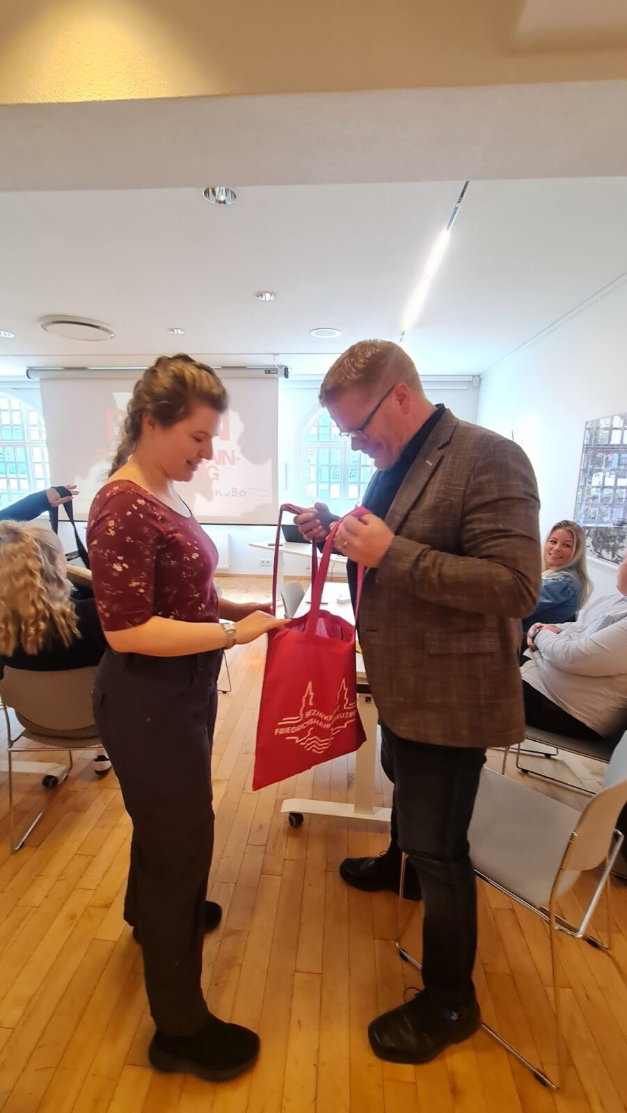 Valdimar Víðisson bæjarstjóri stýrði för og þakkaði hópnum fyrir áhugann og komuna. Stella Björg Kristinsdóttir, fagstjóri Frístundastarfs og forvarna, sagði frá ungmennastarfinu og forvörnunum. Þórunn Þórarinsdóttir, verkefnastjóri barnvæns sveitarfélags og umsjónarmaður yfir ungmennaráði Hafnarfjarðar, sagði frá glænýju viðurkenningunni en Hafnarfjaðrarbær er nú barnvænt sveitafélag.
