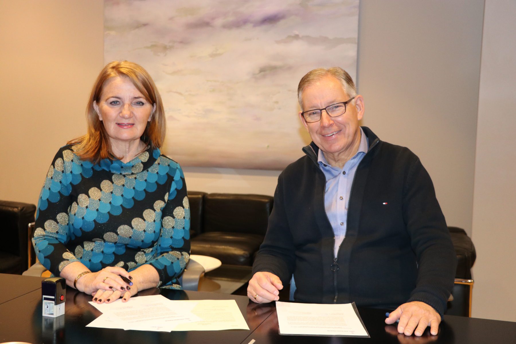 Asvellir3Mynd1Rósa Guðbjartsdóttir bæjarstjóri og Magnús Gunnarsson  framkvæmdastjóri Hauka skrifa undir framkvæmdasamning.