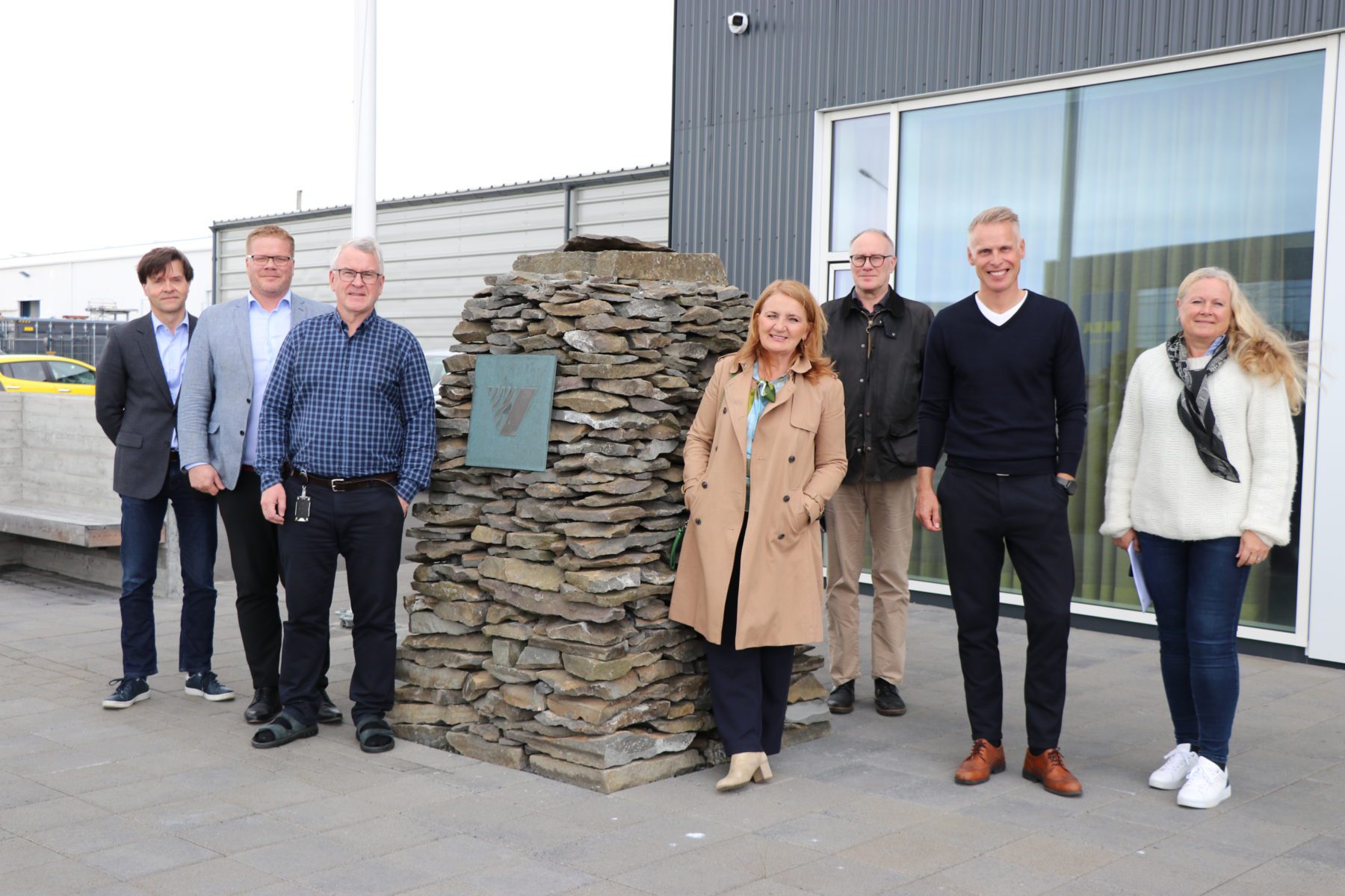 Fremri röð frá vinstri: Valdimar Víðisson formaður bæjarráðs, Rósa Guðbjartsdóttir bæjarstjóri Hafnarfjarðar, Óskar Örn Jónsson forstöðumaður hjá Vegagerðinni og Jón Heiðar Gestsson verkefnastjóri. Aftari röð frá vinstri: Sigurður Haraldsson sviðsstjóri umhverfis- og skipulagssviðs, Helga Stefánsdóttir forstöðumaður framkævmda- og rekstrardeildar hjá Hafnarfjarðarbæ og Sigurður Nordal sviðsstjóri stjórnsýslusviðs Hafnarfjarðarbæjar.