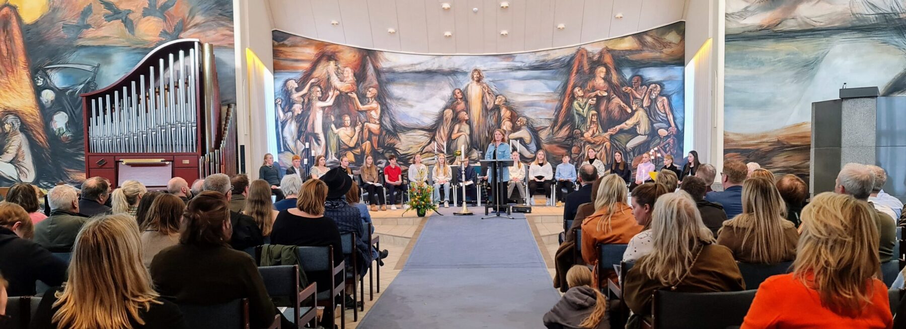 Já, vandaður, fallegur upplestur ómaði um Víðistaðakirkju þegar átján nemendur úr 7. bekkjum grunnskóla Hafnarfjarðar tóku þátt í Stóru upplestrarkeppninni 2024. Nemendurnir fluttu brot úr skáldverkinu Hetja, eftir Björk Jakobsdóttur og ljóð úr bókinni 2. umferð eftir skáld keppninnar, Braga Valdimar Skúlason. Þau Björk og Bragi Valdimar voru í salnum og hlýddu einnig á upplesturinn.