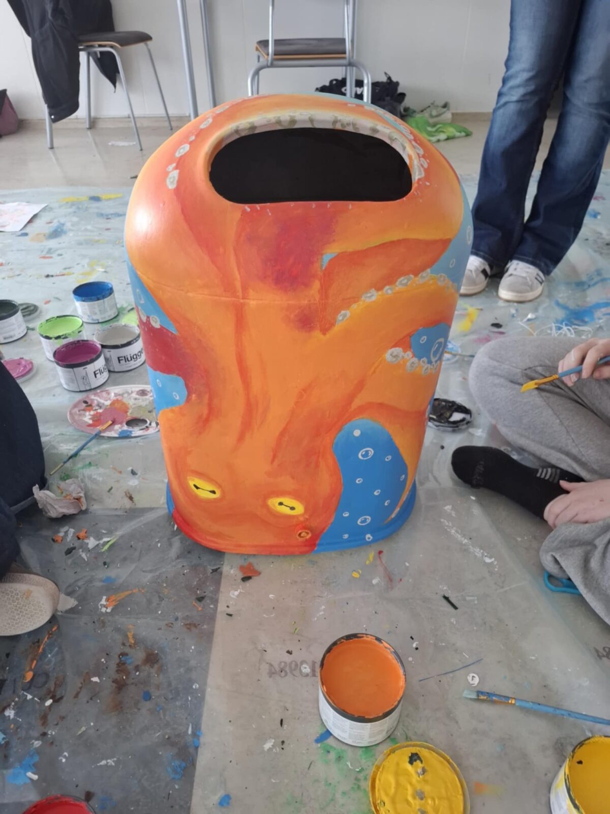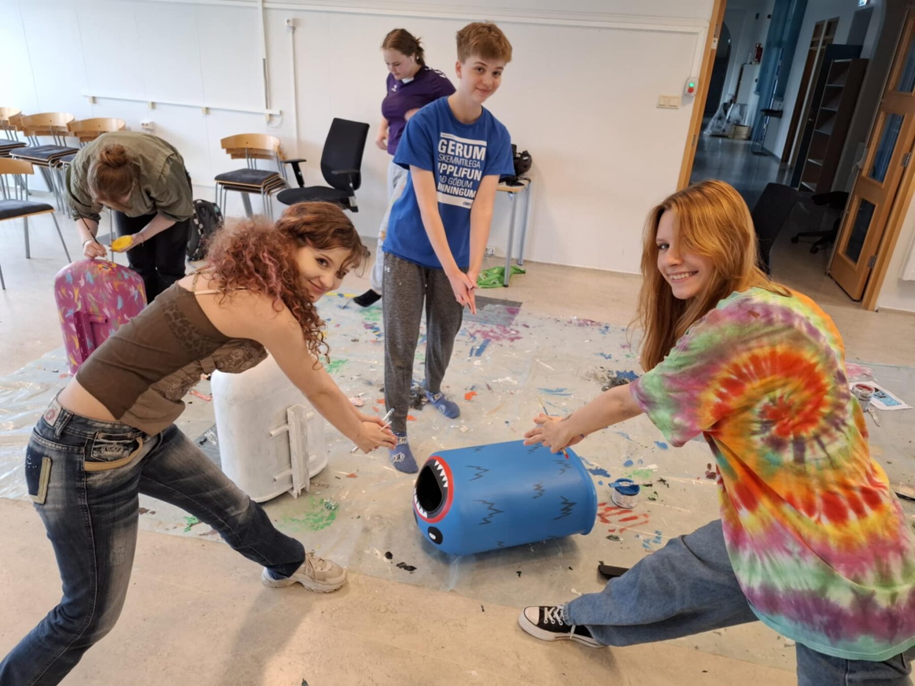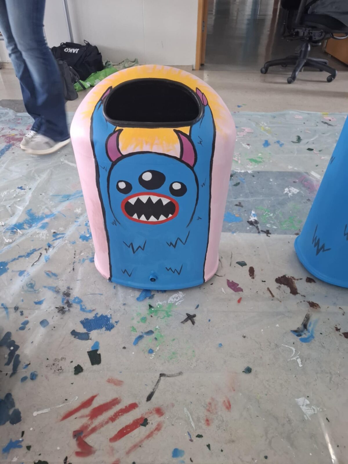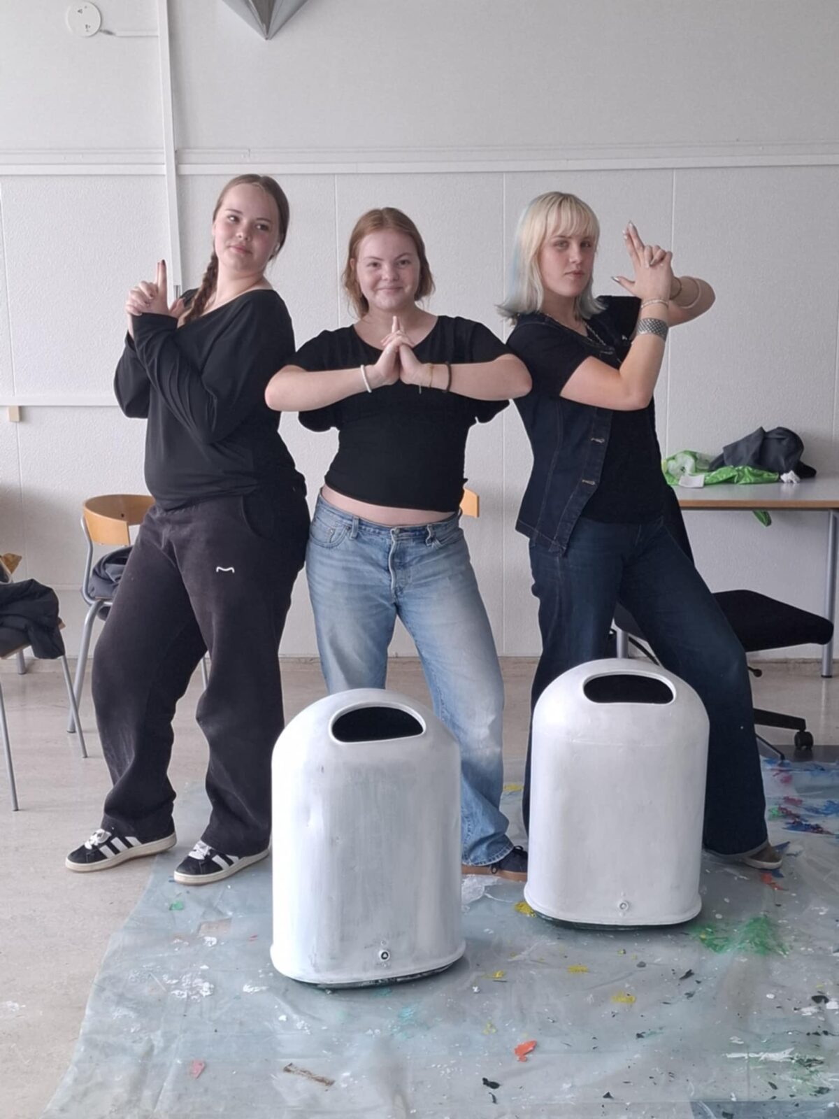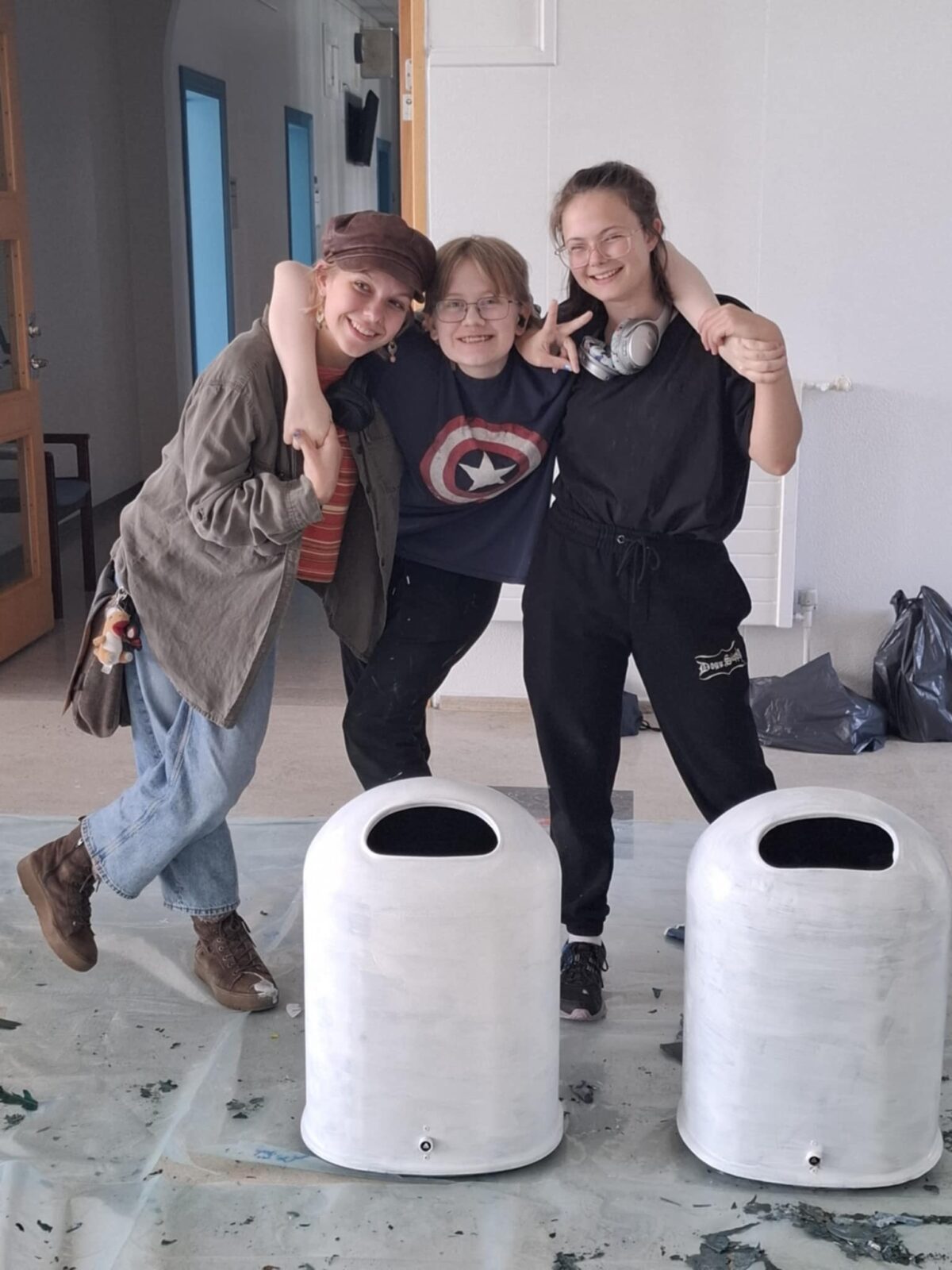 „Við vonum svo að þegar fólk hendir rusli í þessi skapandi ruslaskrímsli hugsi það um umhverfið.“ En, hvenær fara tunnurnar upp? „Við stefnum á að þær fari upp næstu daga,“ segir Diljá og hvetur ungt fólk til að kynna sér listhópinn og aðra innan vinnuskólans og sækja um fyrir næstu ár.