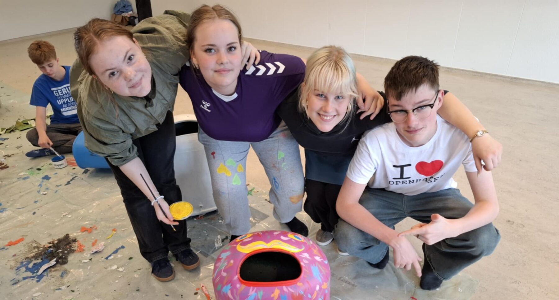 Hve margar tunnur hefur hópurinn nú málað? „Eins og er hafa þau fengið leyfi fyrir átta tunnum. Þær verða settar upp frá Vesturbæjarísbúðinni á Strandgötu að Nýsköpunarsetrinu og svo í átt að Hörðuvöllum,“ segir Diljá en í hópnum eru sautján krakkar á aldrinum 15-17 ára.