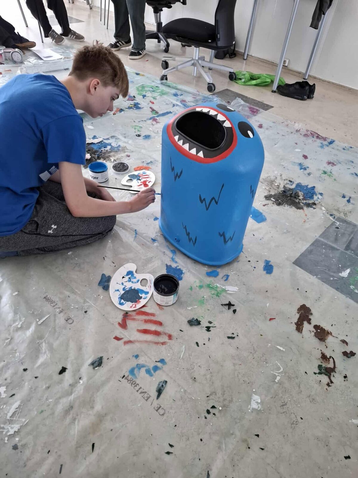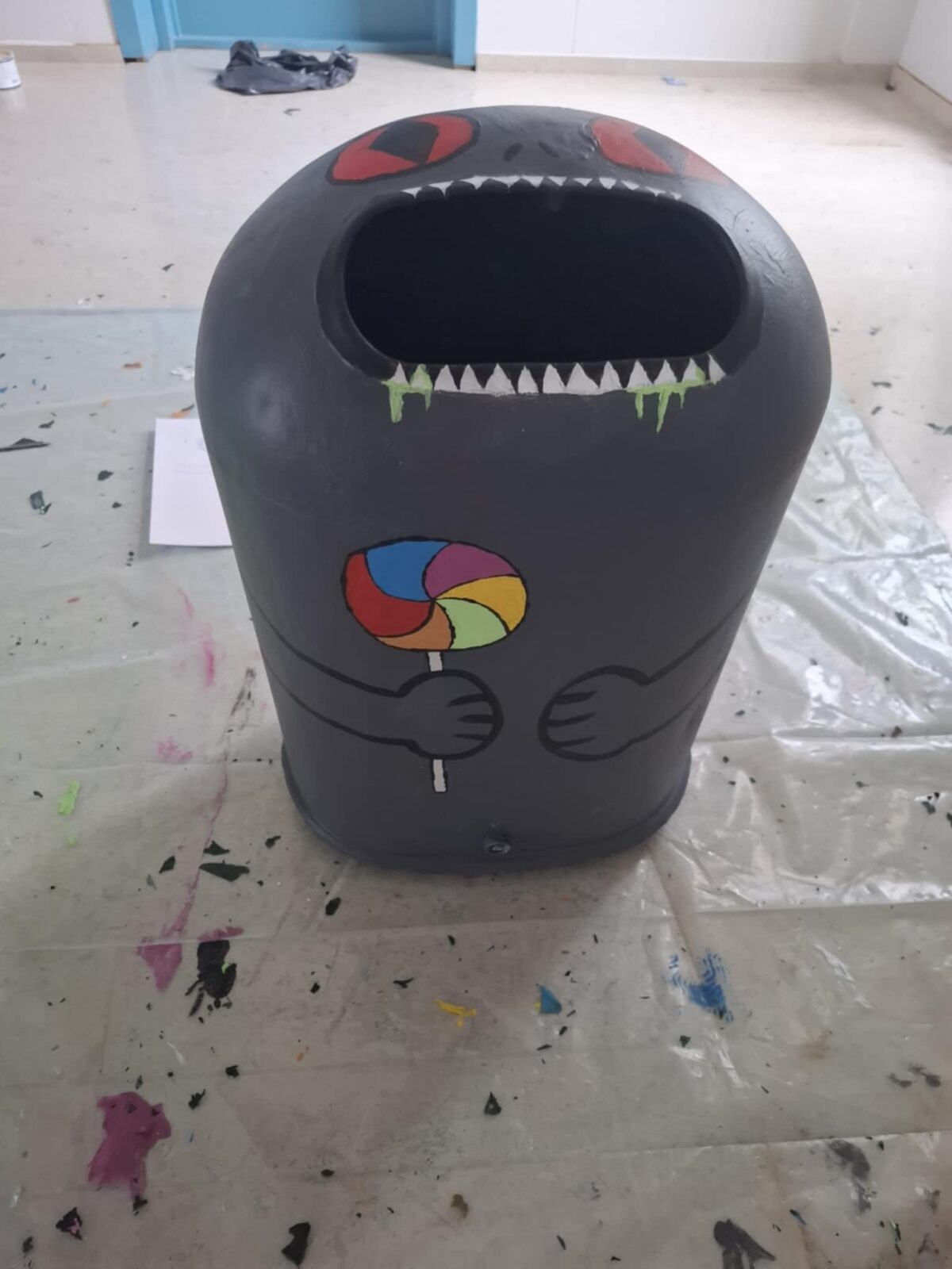 Listahópur Vinnuskóla Hafnarfjarðar hefur breytt litlum grænum ruslatunnum í lítil ruslaskrímsli sem gleypa ruslið sem í þær fer. Sautján ungmenni eru í listahópi vinnuskóla bæjarins.