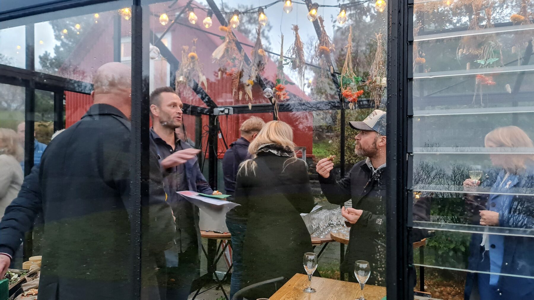 Sól Restaurant, Fléttuvellir 15, Furuvellir 20, Heiðvangur 5, Áshamar 12-26 og 50, Borgarhella 1, 3 og 5 og kaffibarinn Barbara fengu öll viðurkenningu. Stundin var frábær og hlý þótt nokkuð haustlegt hafi verið um að litast. Fólk varðist kuldanum undir skyggni sviðsins í þessum frábæra listigarði okkar Hafnfirðinga.